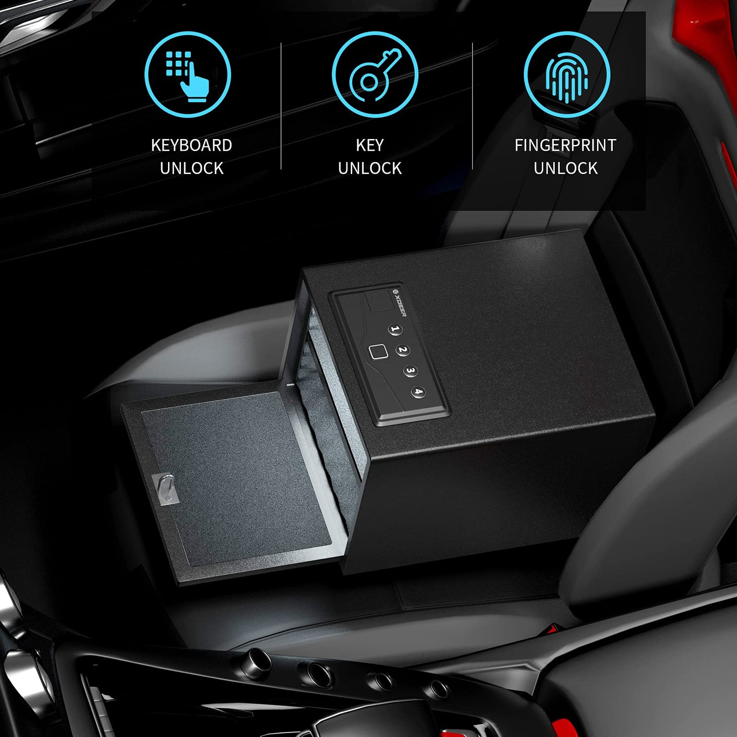 - XDeer Biometric Pistol Safe (FCC & California DOJ Certified) - Quick Access Handgun Safe with Fingerprint & Digital Keypad, Secure Home Gun Safe for up to 4 Pistols (No Cleaning Kit)