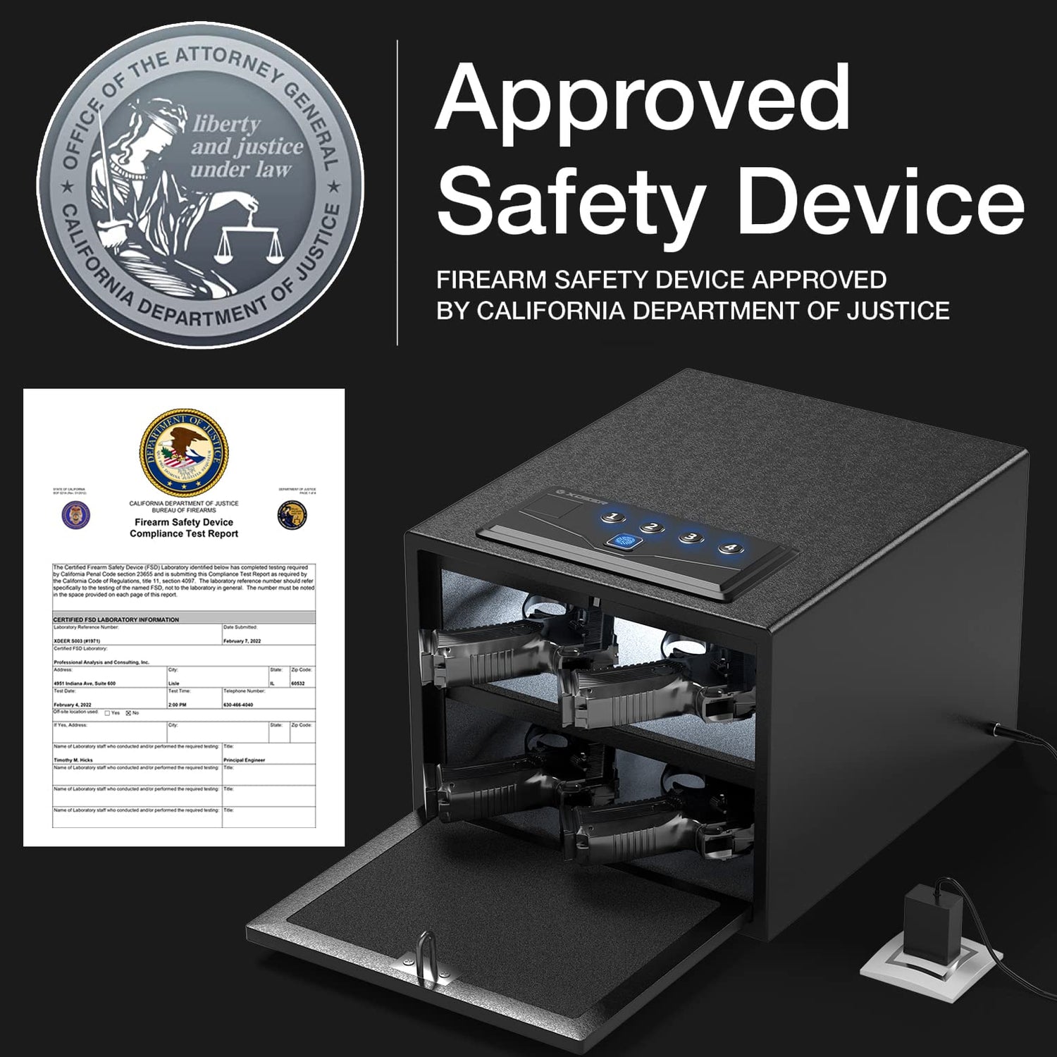 - 【DOJ,Approved Safety Device】XDEER gun safe has been tested and found to comply with firearm safety device approved by california department of justice