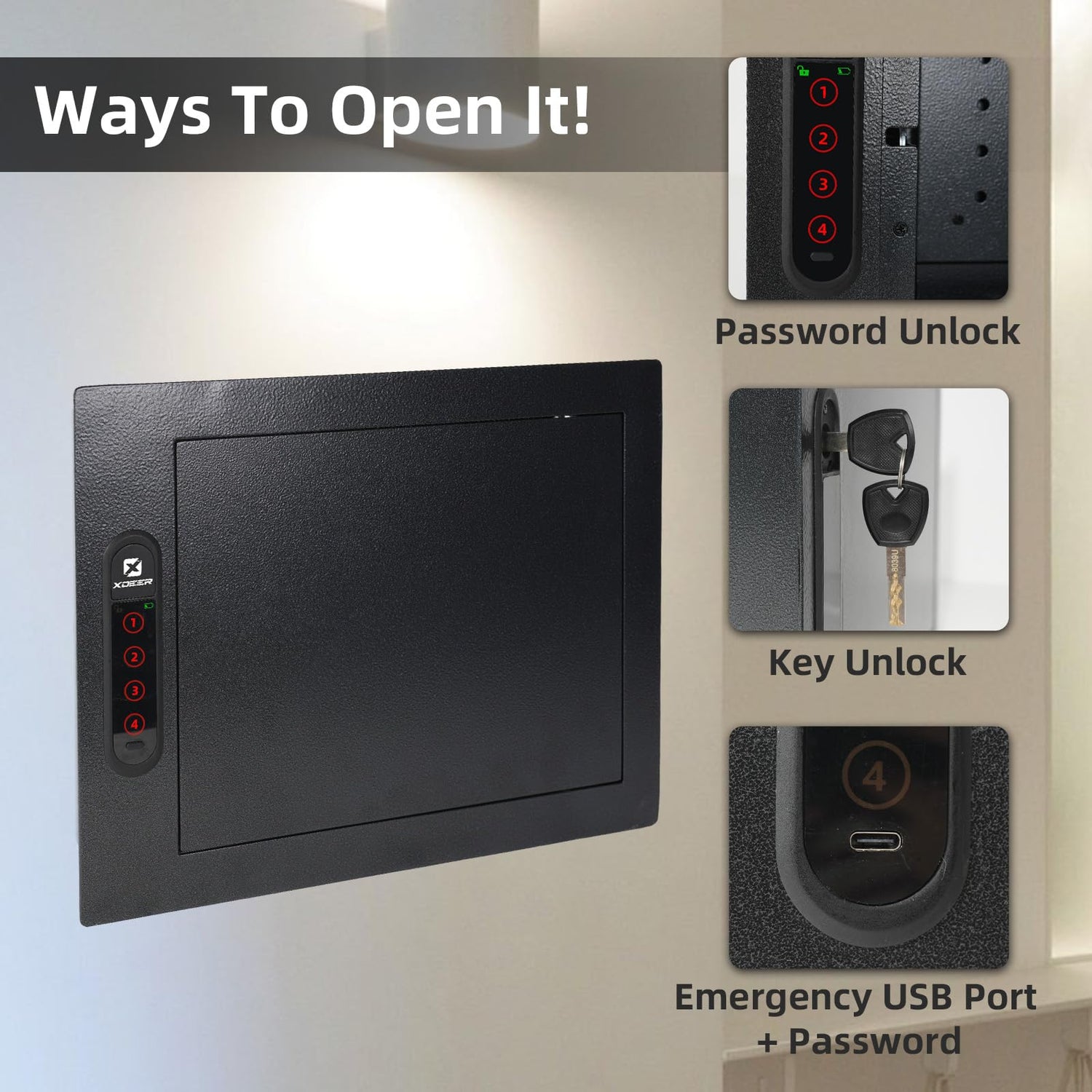 XDeer Hidden In Wall Safes Between Studs with Removable Pegboard,0.405 cuft Hidden Security Floor Safe with Key Lock for Handgun, Jewelry, Passport