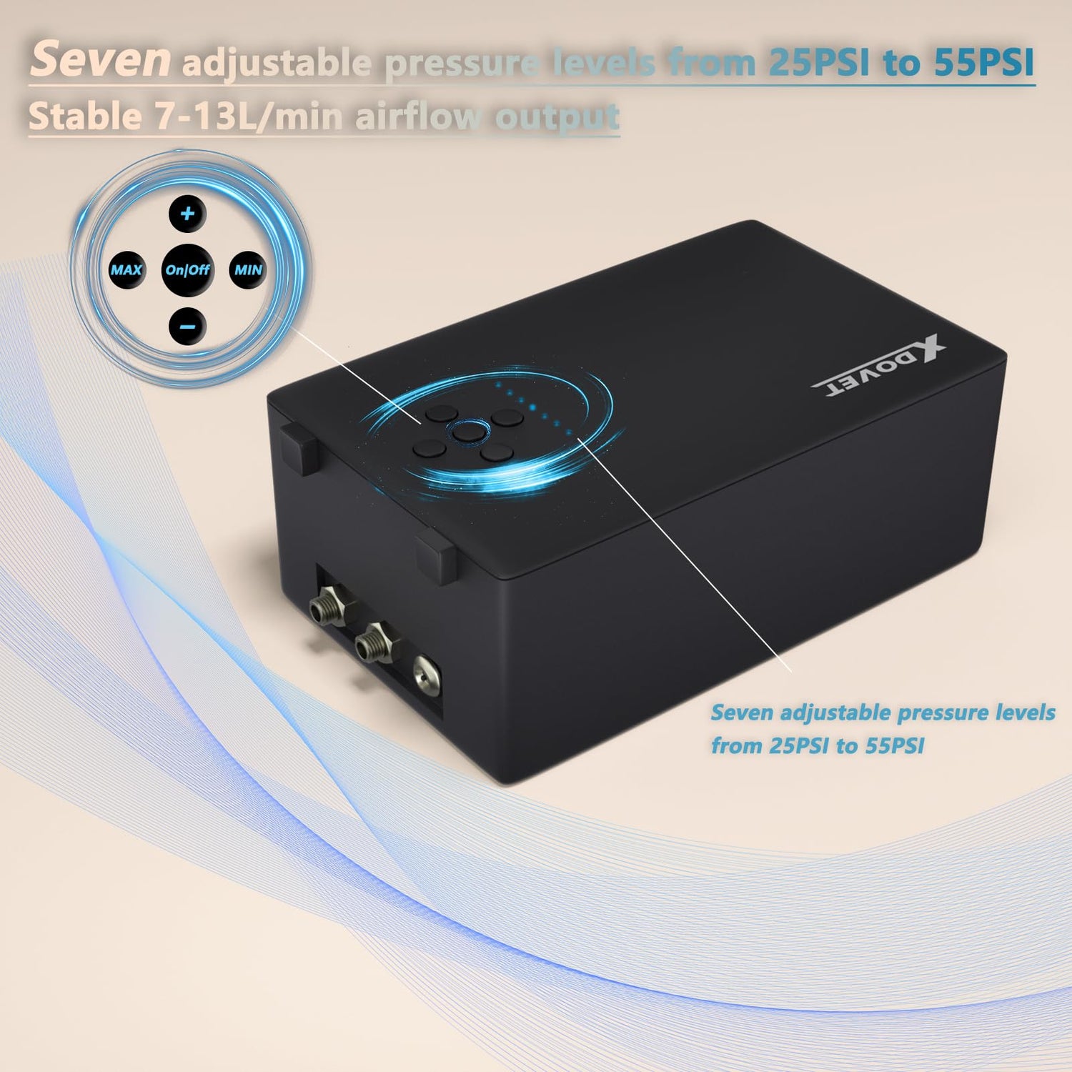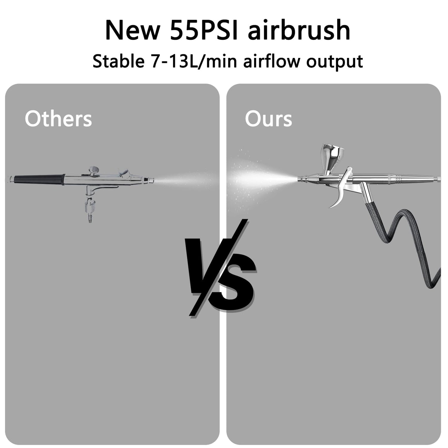 - 【Adjustable 7-Gear Air Pressure】 Compared with other airbrush sets, this 2024 upgraded airbrush kit comes with 7-gear adjustment form 25psi to 55psi and the highest airflow reaches 7-13L increase 80% in performance, it can also be stable after long time use, meet your professional needs.