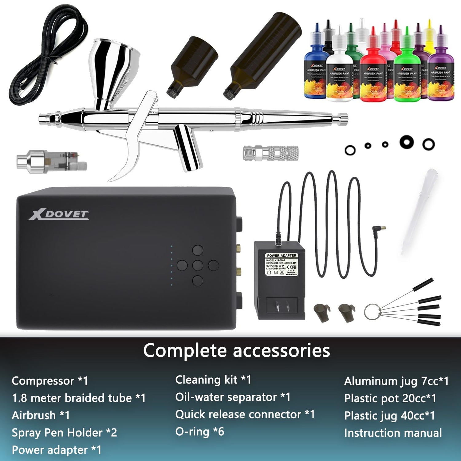 - 【All-Powerful Accessories】 Abundant accessories can fully meet your requirements. one-time purchase of cost-effective kits, no need to spend extra time and money to buy other accessories. this airbrush set also includes professional trigger gun, airbrush cleaning kit and 12 color painting set.