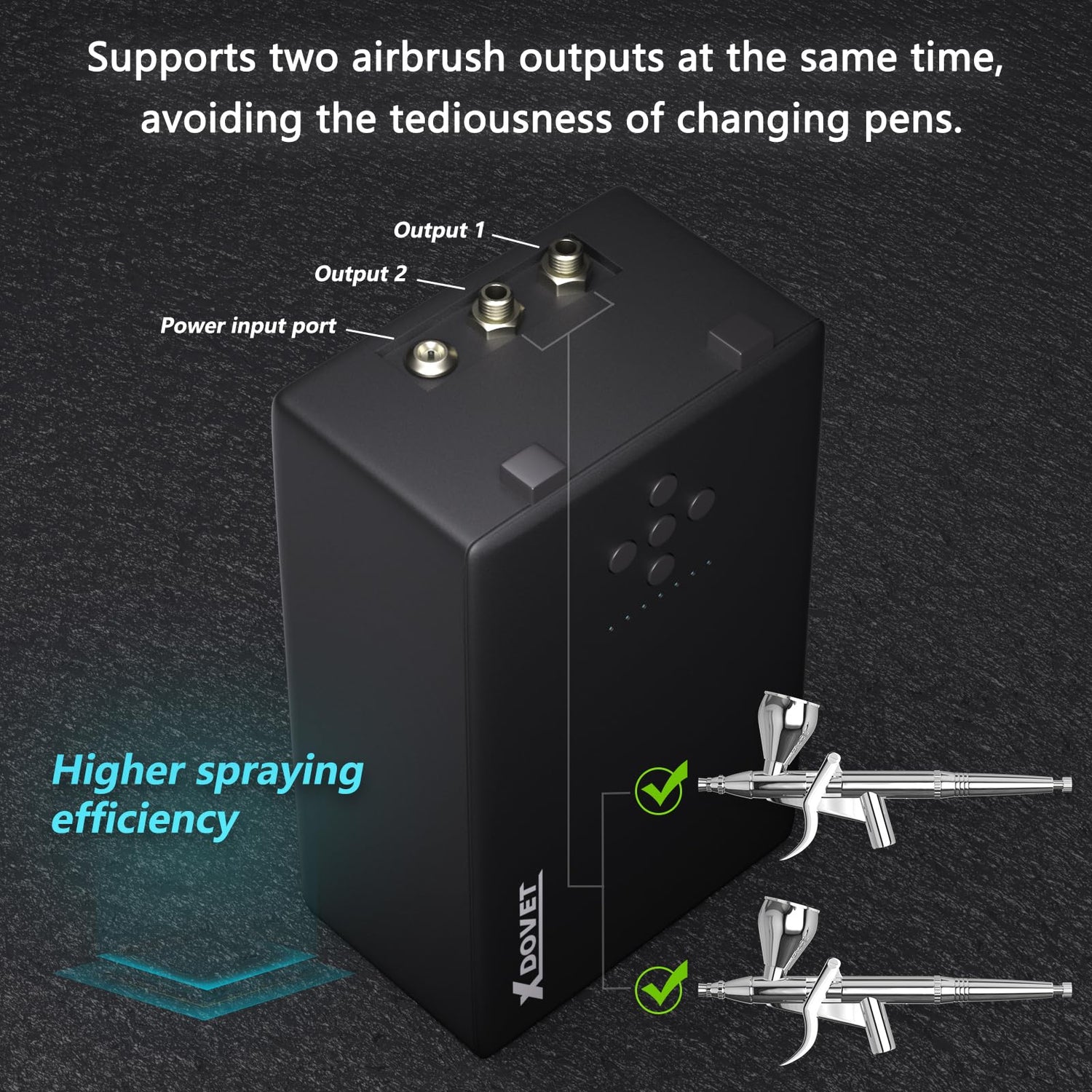 - 【2024 New Function】This is a brand new design, compared with other Airbrush Compressors, this airbrush compressor can use 2 airbrush painting at the same time which is more convenient your creation.