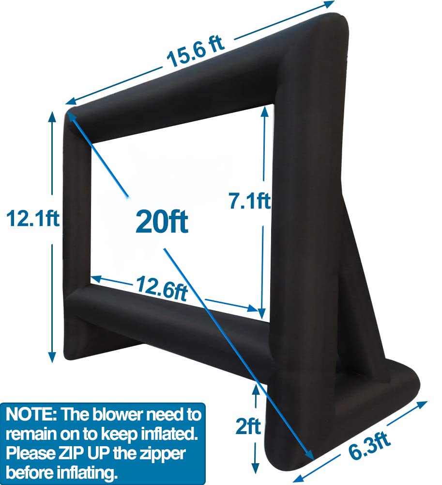 • 【Front / Rear Projection】The inflatable movie screen is upgraded to thickened polyester material which support front and rear projection, 160°wide viewing Angle, 16:9 screen ratio, high color reduction. A lot of outdoor movie screens are only setup for front or rear projection, this one gives you both options which is greatly flexibility, you can see clear pictures on any side.