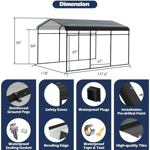 Xilingol Metal Carport, Heavy Duty Carport Canopy with Galvanized Steel Frame and Roof, Outdoor Storage Shed, Car Tent Garage Shelter for Pickup, Truck, Boat and Tractor (10x15 FT Black)