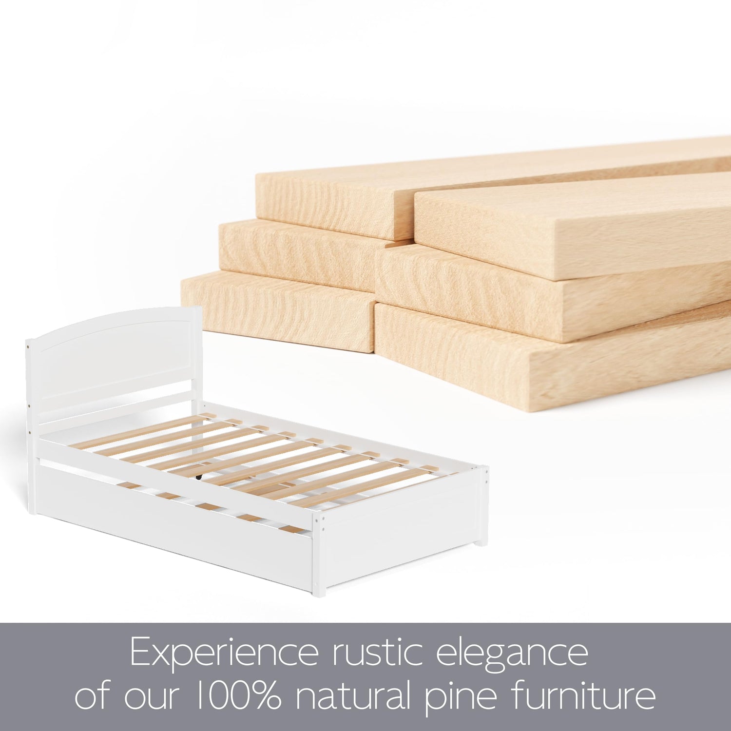 Xilingol Trundle Bed Twin, Solid Wood Bed Frames with Headboard and Wooden Slats Support, Twin Trundle Bed Frame Roll Out, Single Box (No Box Spring Needed), White