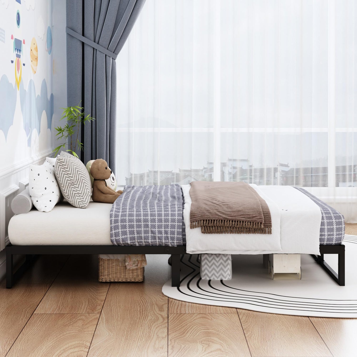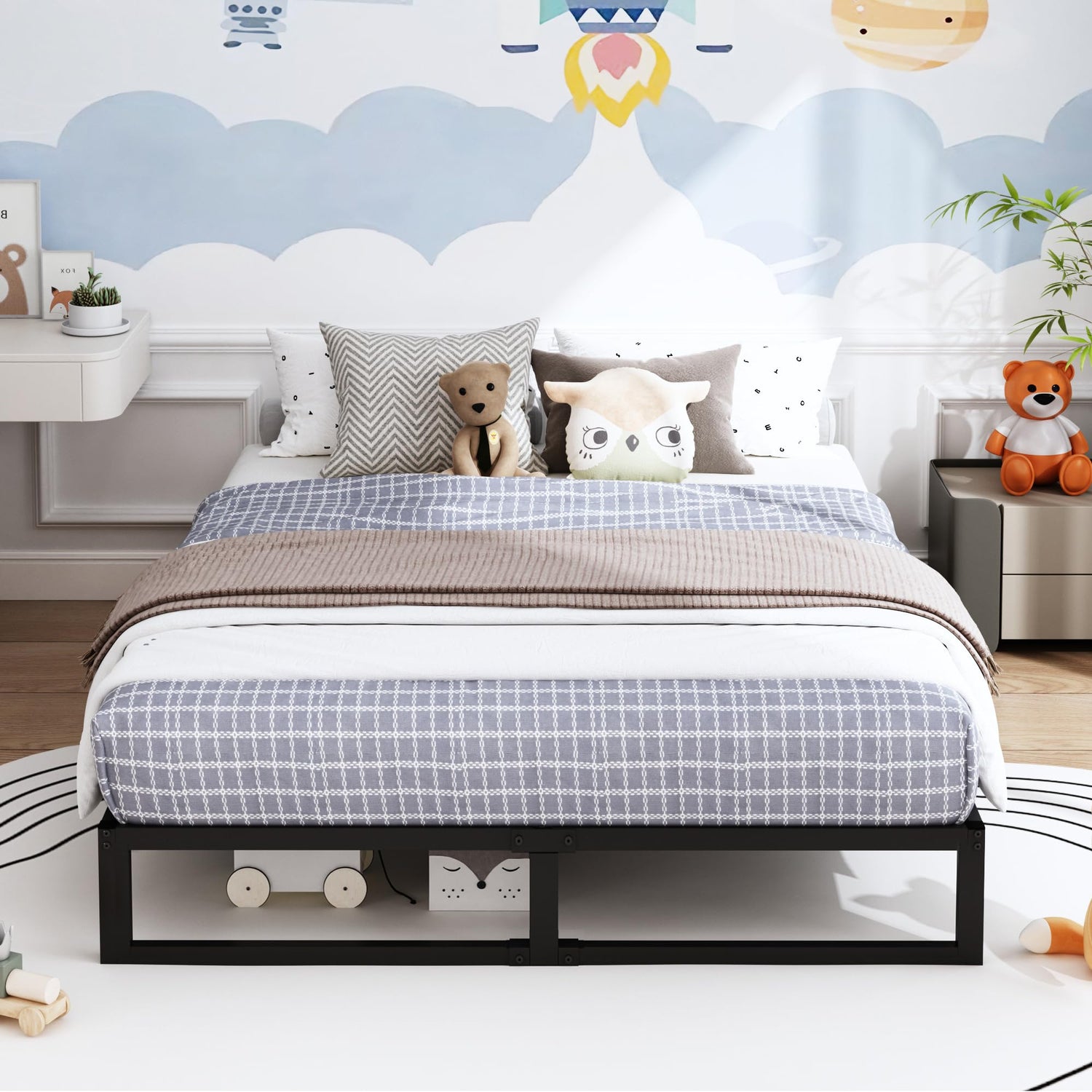 - Noise-Free Design: The square queen bed frame structure adds stability to the metal bed frame queen size, reducing noise that may occur from instability or friction with the mattress.