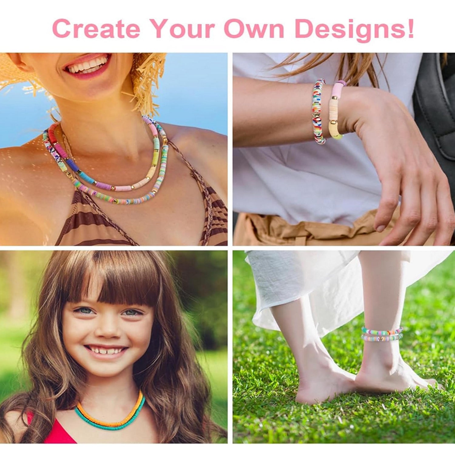- [ Perfect Bracelet Making Kit ] All you need included, 6 boxes clay beads,letter beads,hear beads,smile beads,charms, shells,scissors,elastic string..ect. This complete expansive jewelry making kits is filled with endless possibilities to be imaginative,to meet all your needs for bracelet&jewelry making.