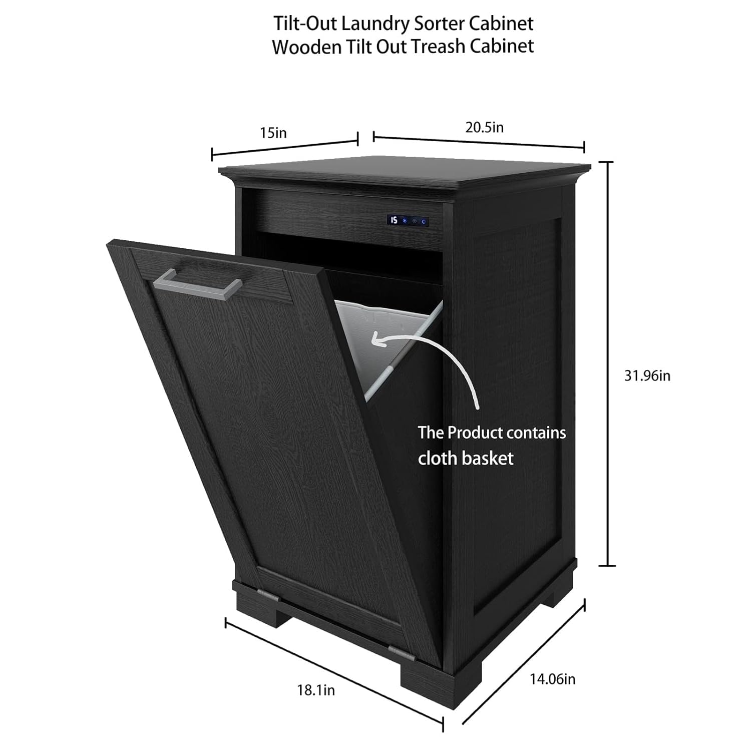 - 【Material & Size】The trash can cabinet is wooden trash cabinet made from high quality MDF and measure 15”L x 20.5”W x 31.96”H. The tilt out trash cabinet accommodate up to 10 gallon bins or dirty clothes baskets (maximum trash can dimensions: 11"L x 15"W x 21"H).Note:This product does not include a trash can, but comes with a foldable cloth basket for clothes.