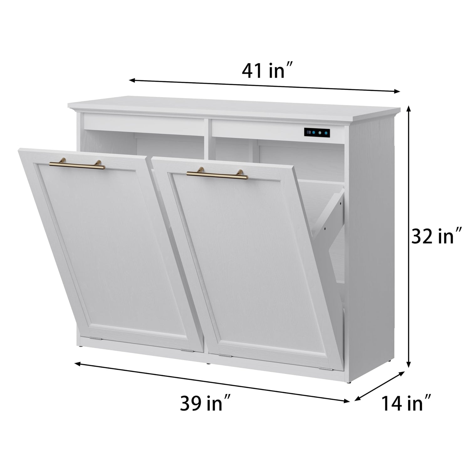 - 【Large Capacity】Size: 41”L x 14”W x 32”H. The extra wooden trash cabinet can hold up to 2x13 gallon bins or dirty clothes baskets (Maximum Trash Can Size: 16.5”Lx11”W x24”H), perfect for holding a large number of items. (Trash cans or dirty clothes baskets are not included with this product)