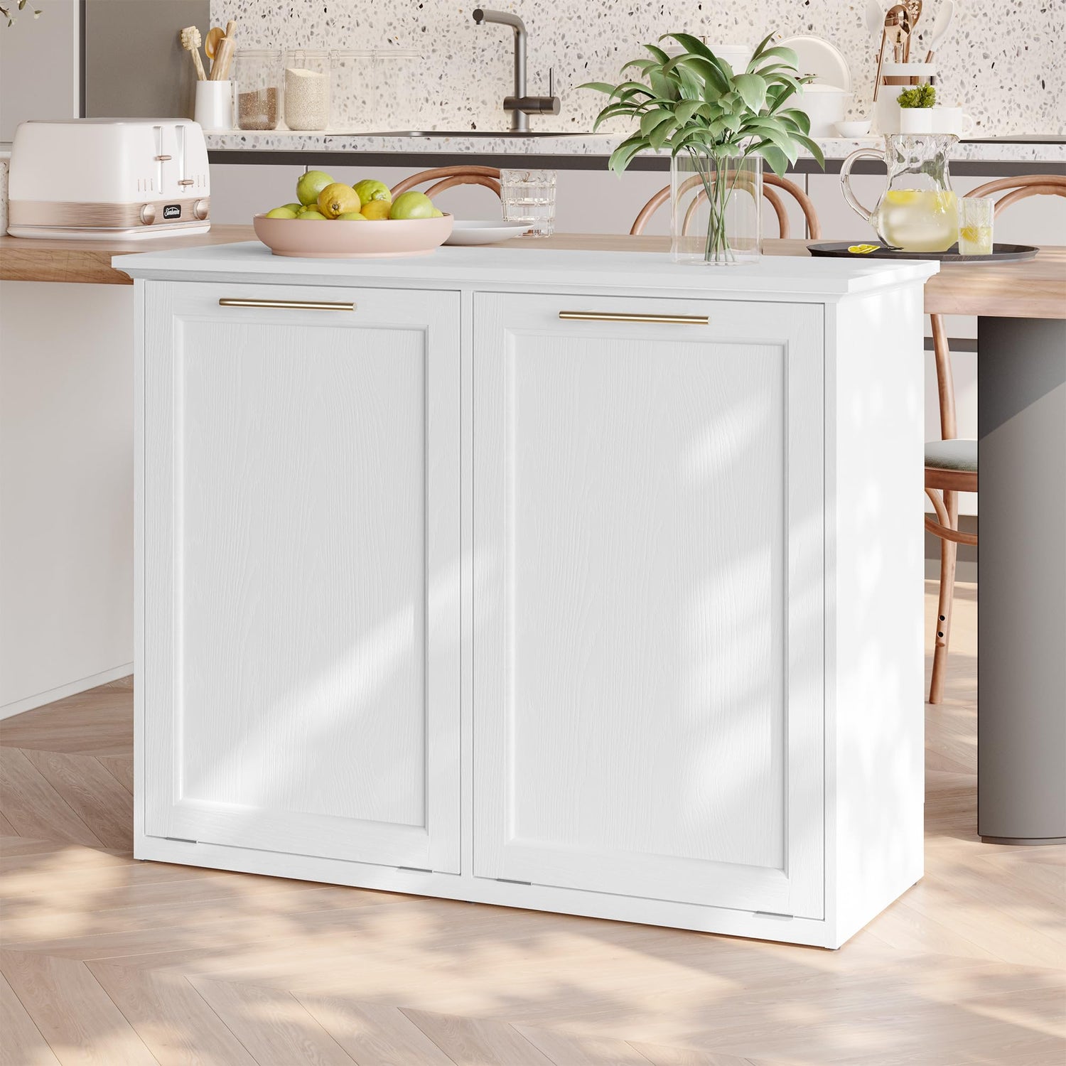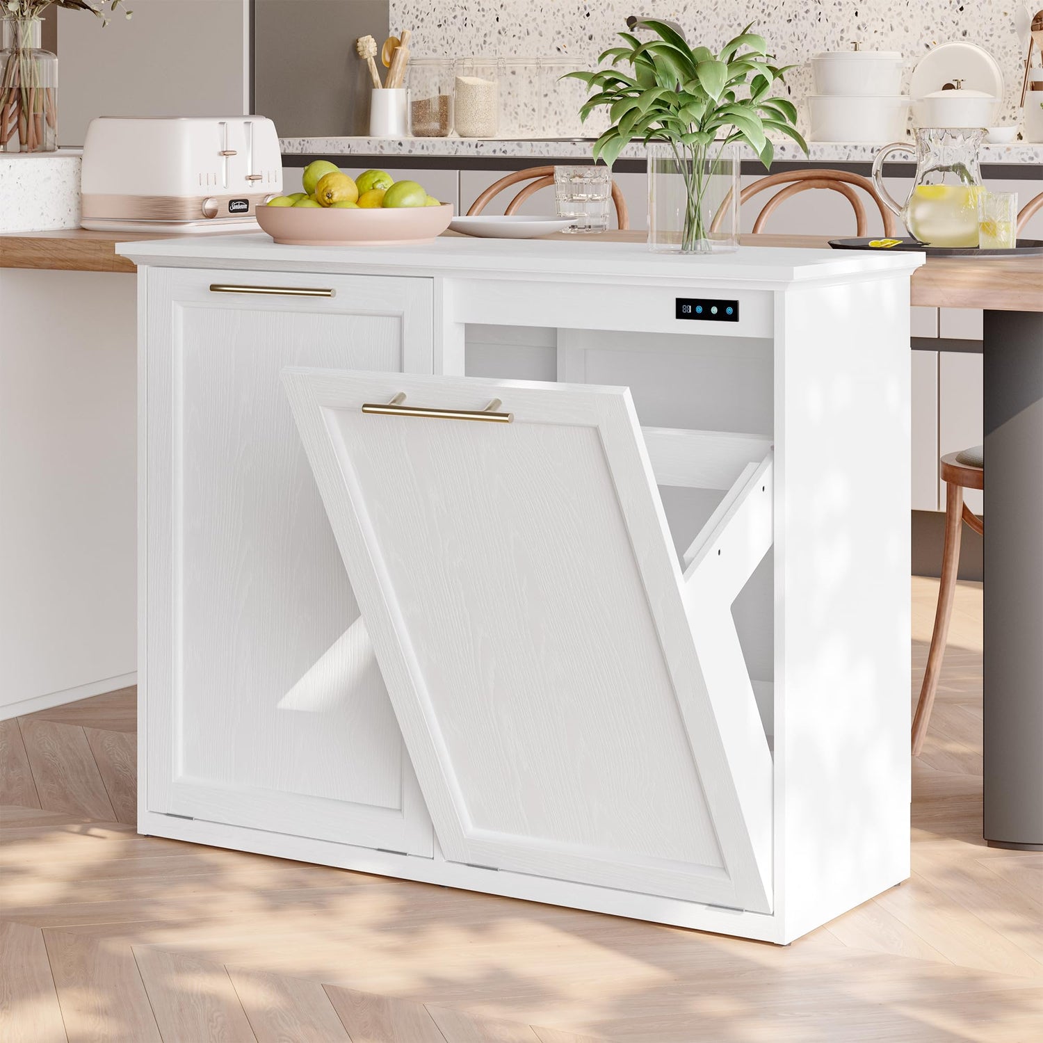 - 【Minimalist Design Trash Cabinet】Modern style design of free-standing hidden cabinet, unique and beautiful minimalist style, can be used in a variety of scenarios, kitchen, dining room, laundry room, living room, etc. (This product should not be placed in a humid environment)