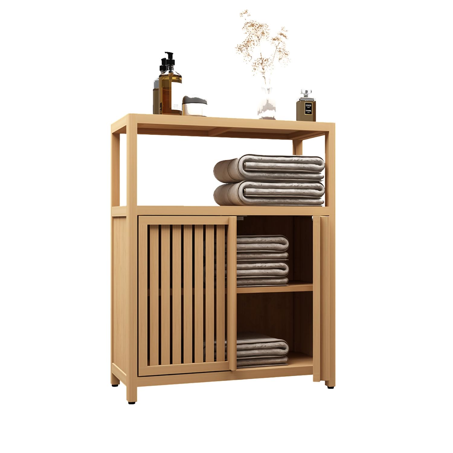 Xmatch Large Capacity Bamboo Bathroom Storage Cabinet with Open Shelf and 2 Doors