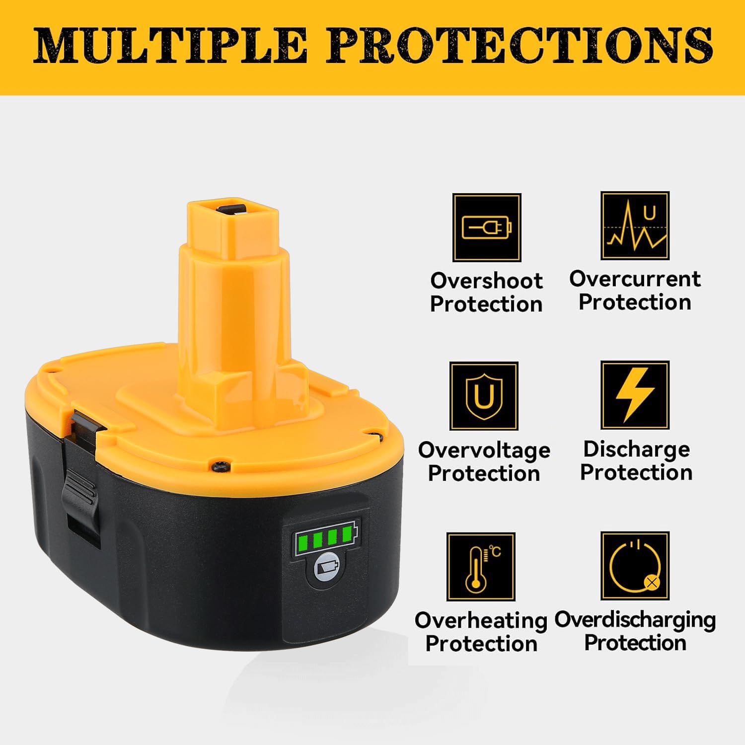 - Wide Compatibility:Replacement for DeWalt 18V Ni-mh Ni-CD battery dc9096 dc9098 dc9099 de9039 de9095 de9096 de9098 dw9095,etc.Perfect for use with 18V Cordless Power Tools.