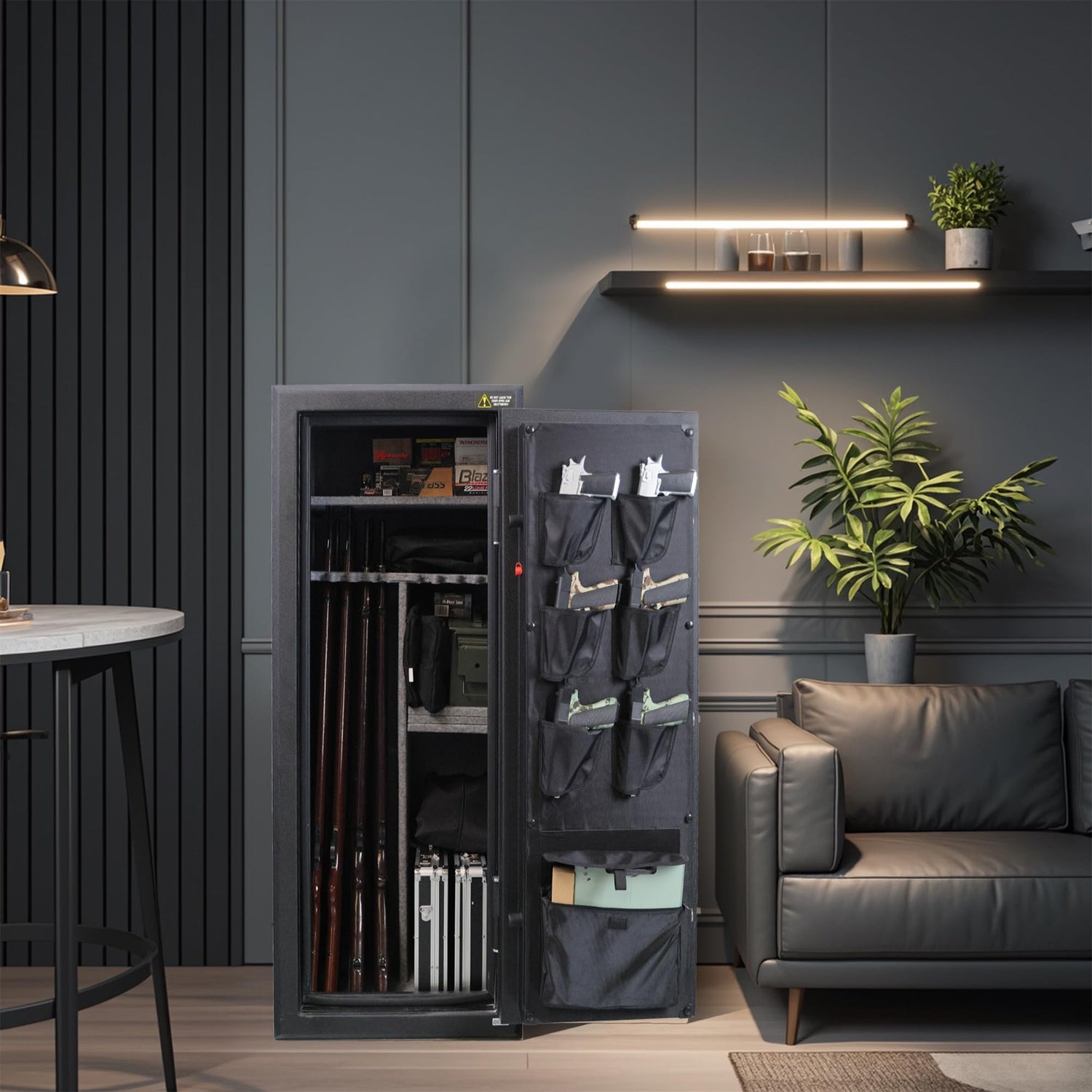XPEDITION 24 Gun Fireproof Safe for Rifles and Pistols,Gun Cabinet with Keypad/Key Access, Fire and Water Safe with Combination Lock,Gun Safes for Rifles and Shotguns (24 gun safe)