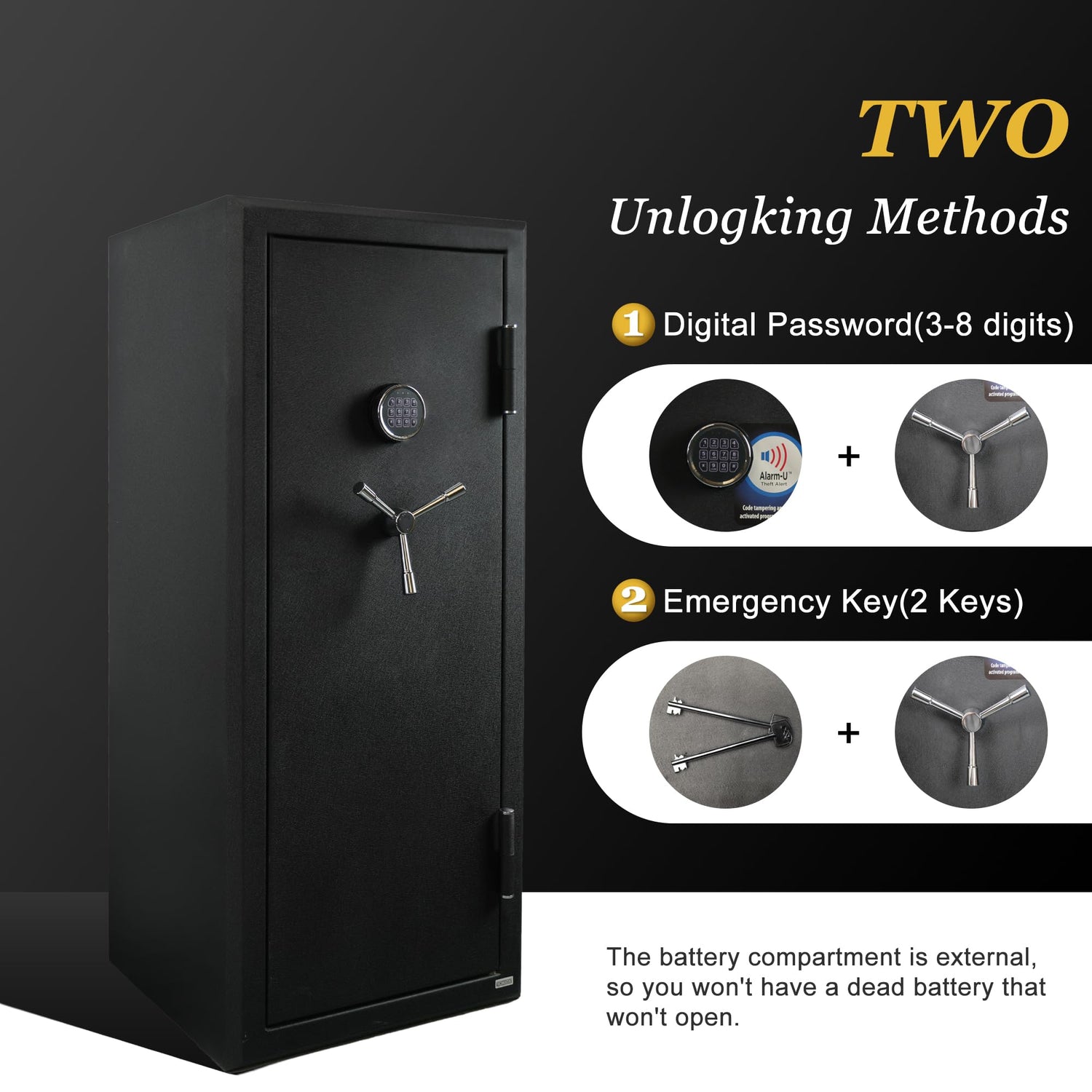 - 【Dual Access & External Battery】 – Quick-entry digital keypad + backup key for reliable access. External battery compartment allows easy replacement in emergencies