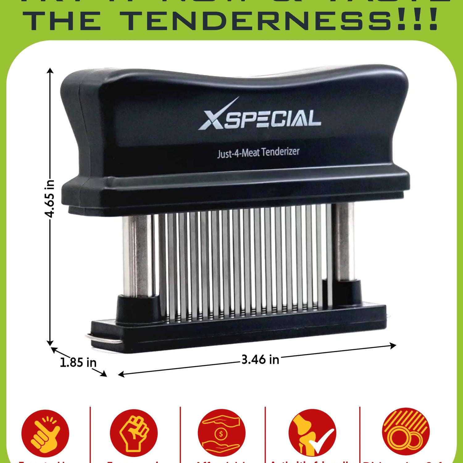 - WANT TO SAVE TIME, SAVE MONEY & EAT JUICIER MEAT? Ever Looked At Your Cooked Meat And Thought, “Hmm.. Swore That Was Bigger” XSpecial Blade Tenderizer Locks In Juices, Stops Meat Shrinkage & reduces cooking Time By 40% - And Less Cooking Time Means Less Loss Of Natural Flavors And Juices – A Win-Win For Any Home Or Professional Chef. EASY TO USE, ERGONOMIC, HANDHELD, ARTHRITIS FRIENDLY, AND REQUIRES NO FORCE, Making It The Best Meat Tenderizer Tool On The Market.