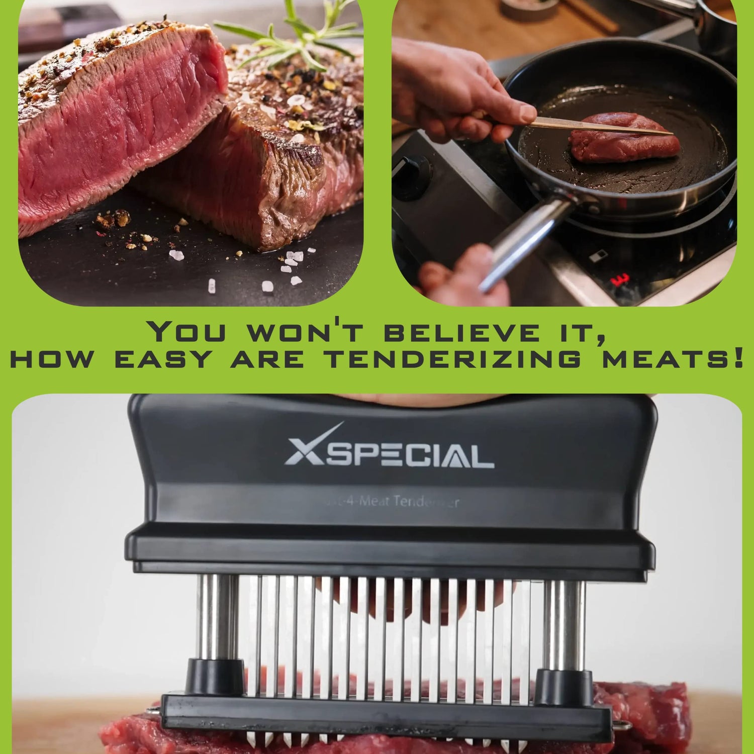 - UNIQUE - ULTRA-THIN, EXTRA-LONG CHEFS KNIFE DESIGN – WON’T PULVERIZE MEAT: XSpecial Meat Tenderizer Tool That Will Have You Saying Goodbye To Tough, Chewy Meats And Hello To Perfectly Tenderizing Steaks, Chicken Breasts, And More! Unlike Other Meat Tenderizers On The Market, such as Jaccard, KitchenAid, Deni, and Oxo, Our unique design features innovative helping to penetrate deeper and more uniformly, ensuring every bite is a delight.