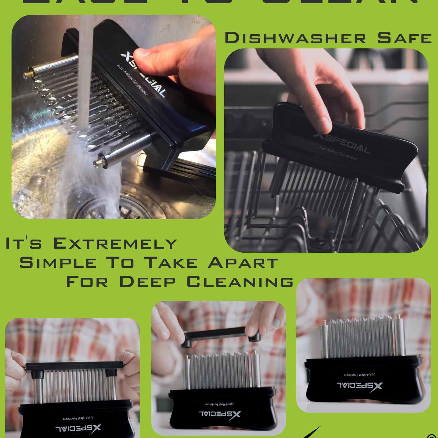 - CRAFTED FROM HIGH-QUALITY STAINLESS STEEL, this handheld meat tenderizer is built to last and is dishwasher-safe For Easy Cleanup. Whether you are preparing a juicy steak or a succulent chicken breast, our meat tenderizer needle tool is your go-to kitchen gadget. The ergonomic handle provides a comfortable grip, making it easy to use without straining your hand. Plus, the compact design won't occupy much space in your kitchen drawer.