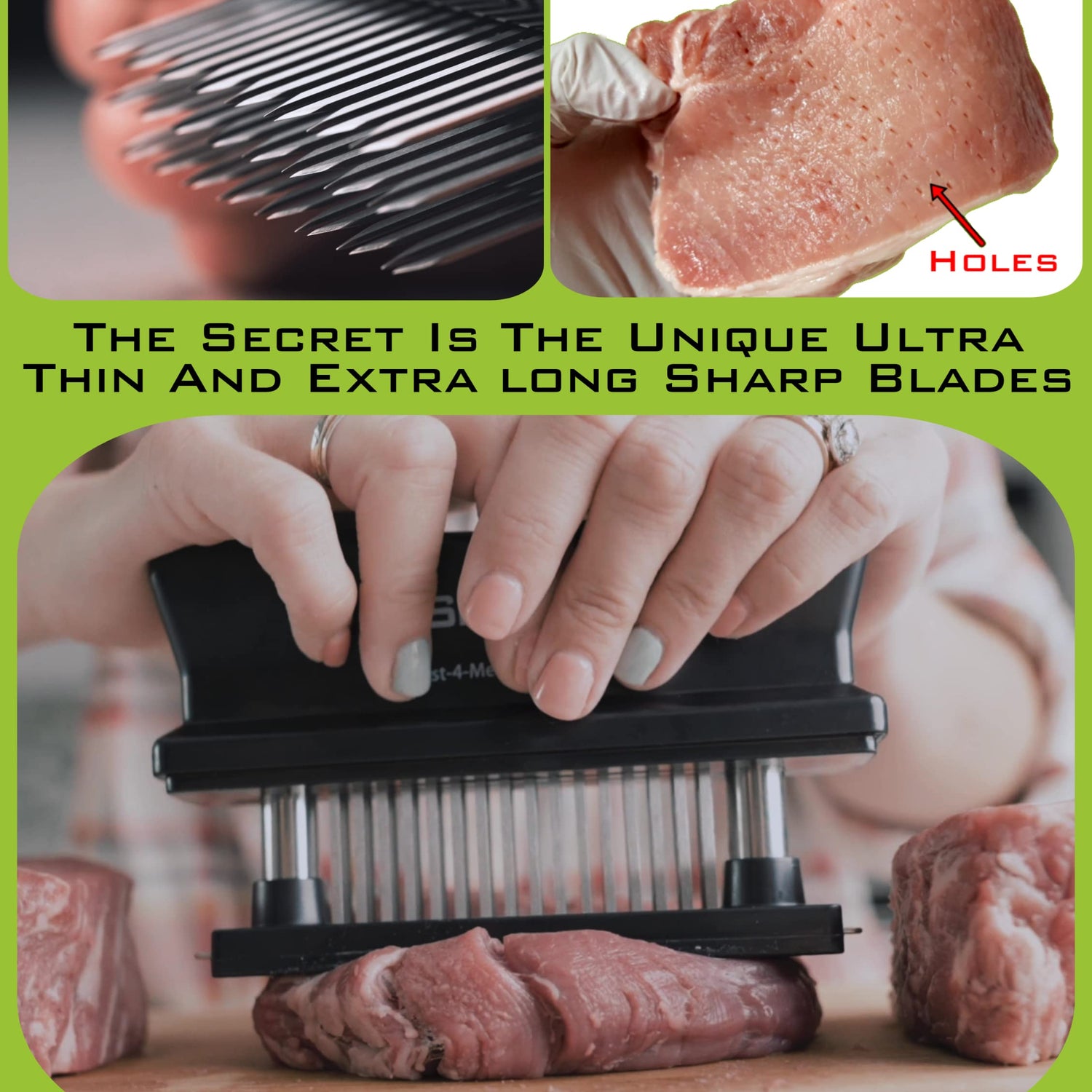 - CRAVE THE BUTTERY FLAVOR PRIME CUTS DELIVER, WITHOUT THE STEEP COST? 48 needle meat tenderizer blades tenderize tough connective tissues so they render like the fat that makes pricier cuts so mouthwatering - resulting in juicy, delectable meat with every bite – 100% GUARANTEED. It’s EASY TO USE, ergonomic, affordable, arthritis-friendly, and requires no force making it the BEST meat tenderizer tool on the market.