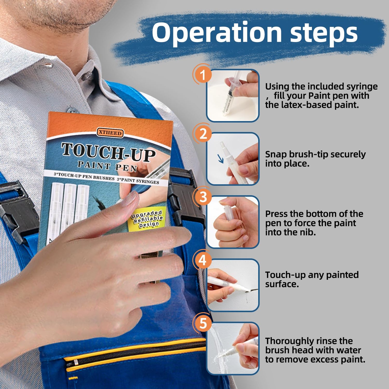 XTIIEED Fillable Touch Up Paint Pen, Refillable Paint Brush Pens, Touch up paint pens for walls - Wood Floors, Windows, Furniture, Kitchen Cabinet, Suitable for Any Repair(3 Pack)