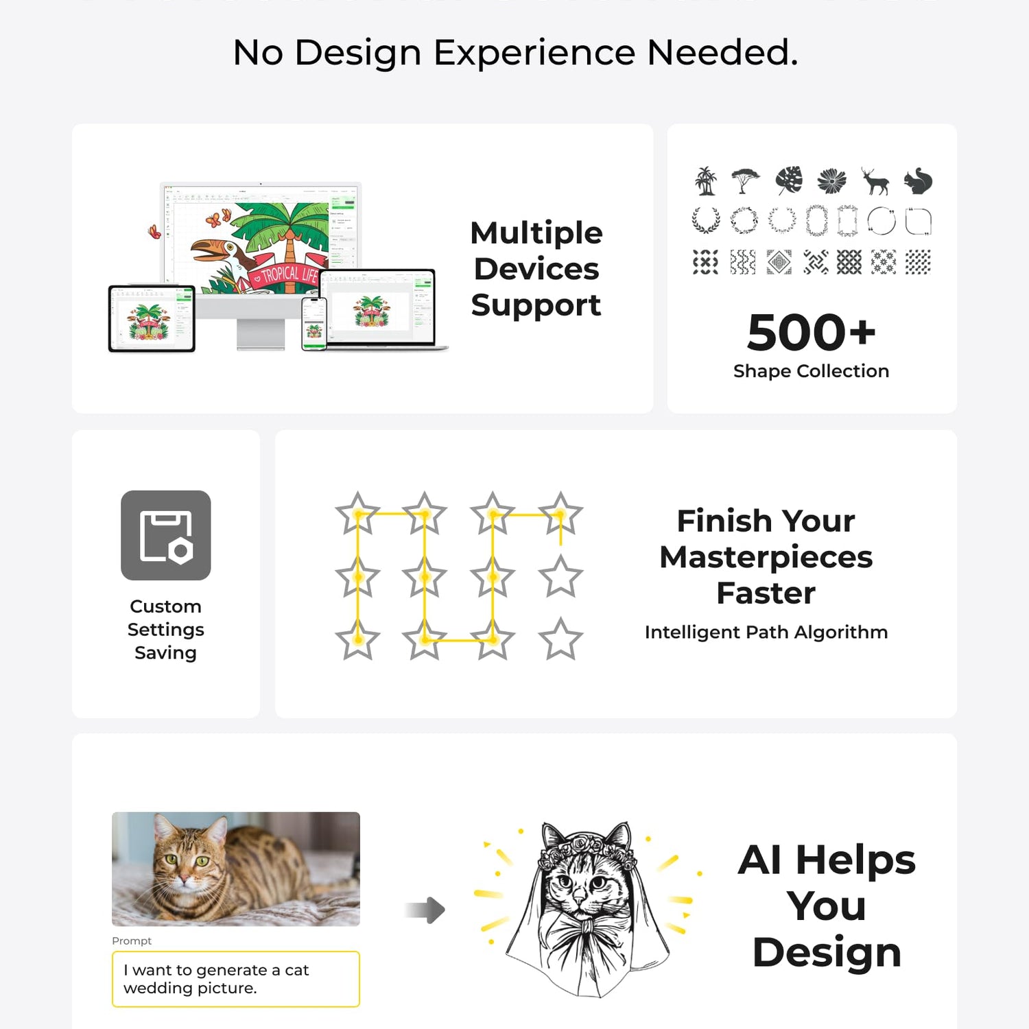 - Safety First: xTool P2S ensures safety with AI fire detection, automatic lock, and emergency stop. Its enclosed design, adjustable air assist, and 233.3 CFM exhaust fan provide efficient smoke removal for cleaner, safer operations in this advanced laser engraver and cutter machine.