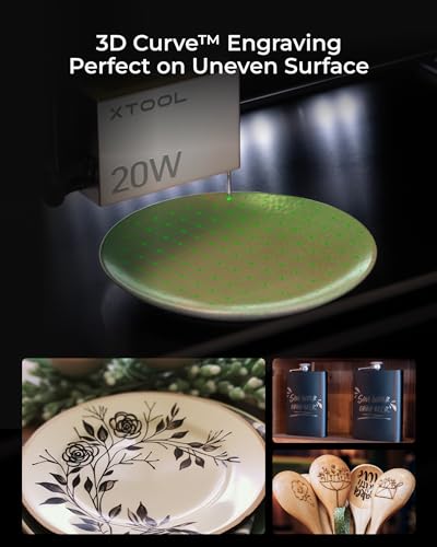 - 【Dynamic Auto-focus for Curved Surface and Thicker Cut】The high-precision auto-focus system intelligently guides the laser beam below the object's surface for thicker cutting (10mm basswood in one pass). The xTool S1 laser engraver also dynamically adjusts the Z-axis for multi-point measurements and automatically constructs a 3D model for perfect 3D laser print on uneven surfaces. No matter what you can imagine, the xTool S1 laser tool helps you to create.