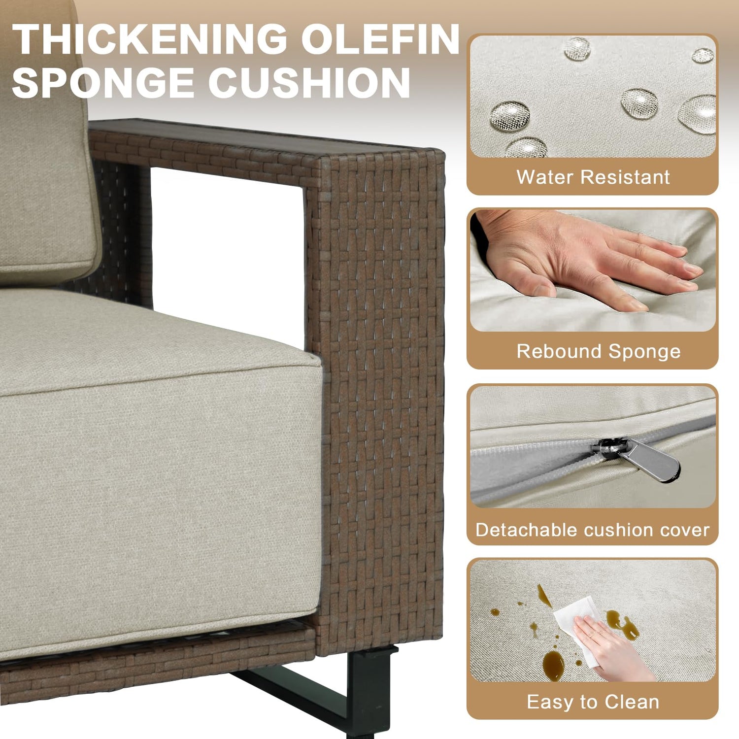 XTWEEX 6-Piece Outdoor Patio Furniture Set, Rocker Chairs and Sofa with Thick Cushions and Steel Frame and Wooden Board, PE Rattan Weaving Outdoor Conversation Set Brown/Light Gray Linen