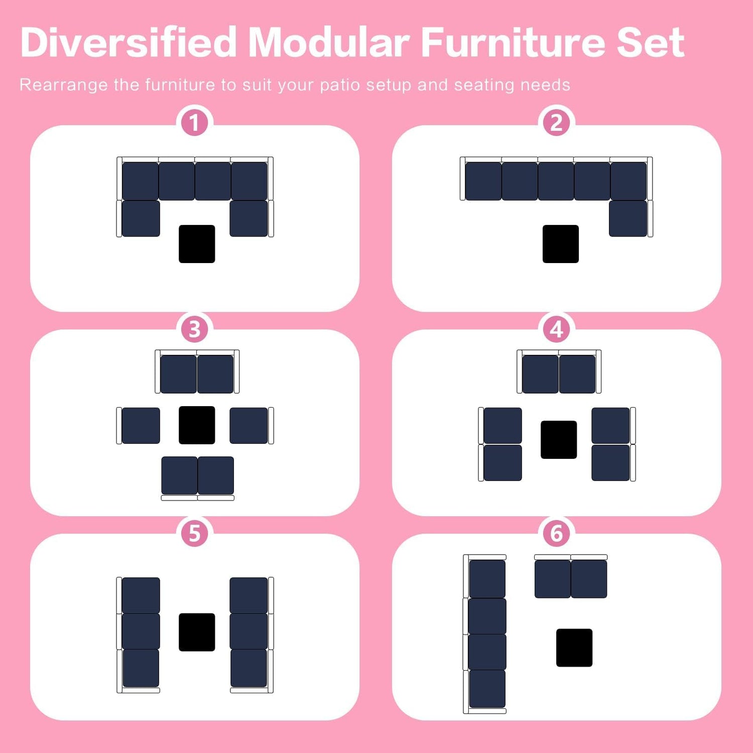 - Luxurious Comfort - Get ready to kick back in style! This set features plush seating with thick, cozy back cushions that provide exceptional comfort, perfect for lounging for hours on end. The sectional sofa is super versatile, allowing you to rearrange the pieces however you like to fit your space and needs. Whether you’re hosting friends or enjoying a quiet evening under the stars, you’ll feel right at home.