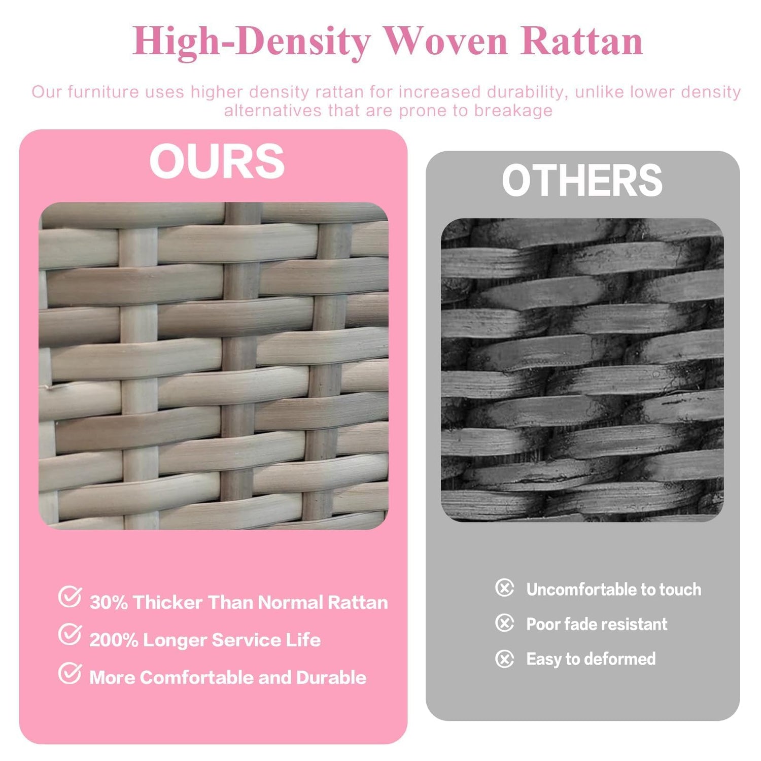 - Robust & Weatherproof - Built to last, this outdoor sectional couch is crafted with sturdy metal frames and high-quality PE rattan, supporting up to 350 lbs without a problem. Rain or shine, this furniture is designed to withstand various weather conditions, so you can enjoy it season after season without worrying about denting, cracking, fading, or even being blown away by strong winds.