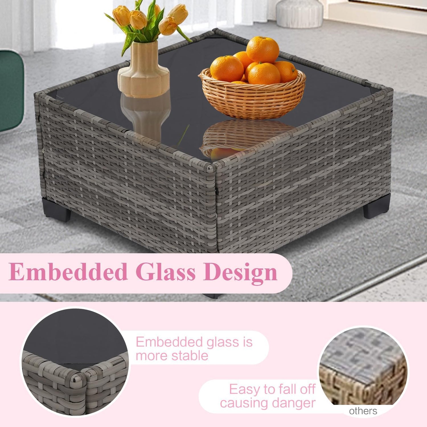 - Simple Setup & Family Fun - Setting up your new patio furniture is a breeze! With clear and easy-to-follow instructions, you and your family can have your new 7-piece set ready to go in no time. The cushion covers come with zippers, making them removable and washable, so keeping everything fresh and clean is simple. Plus, the smooth PE rattan surface allows for hassle-free cleaning—just wipe it down, and you’re good to go!