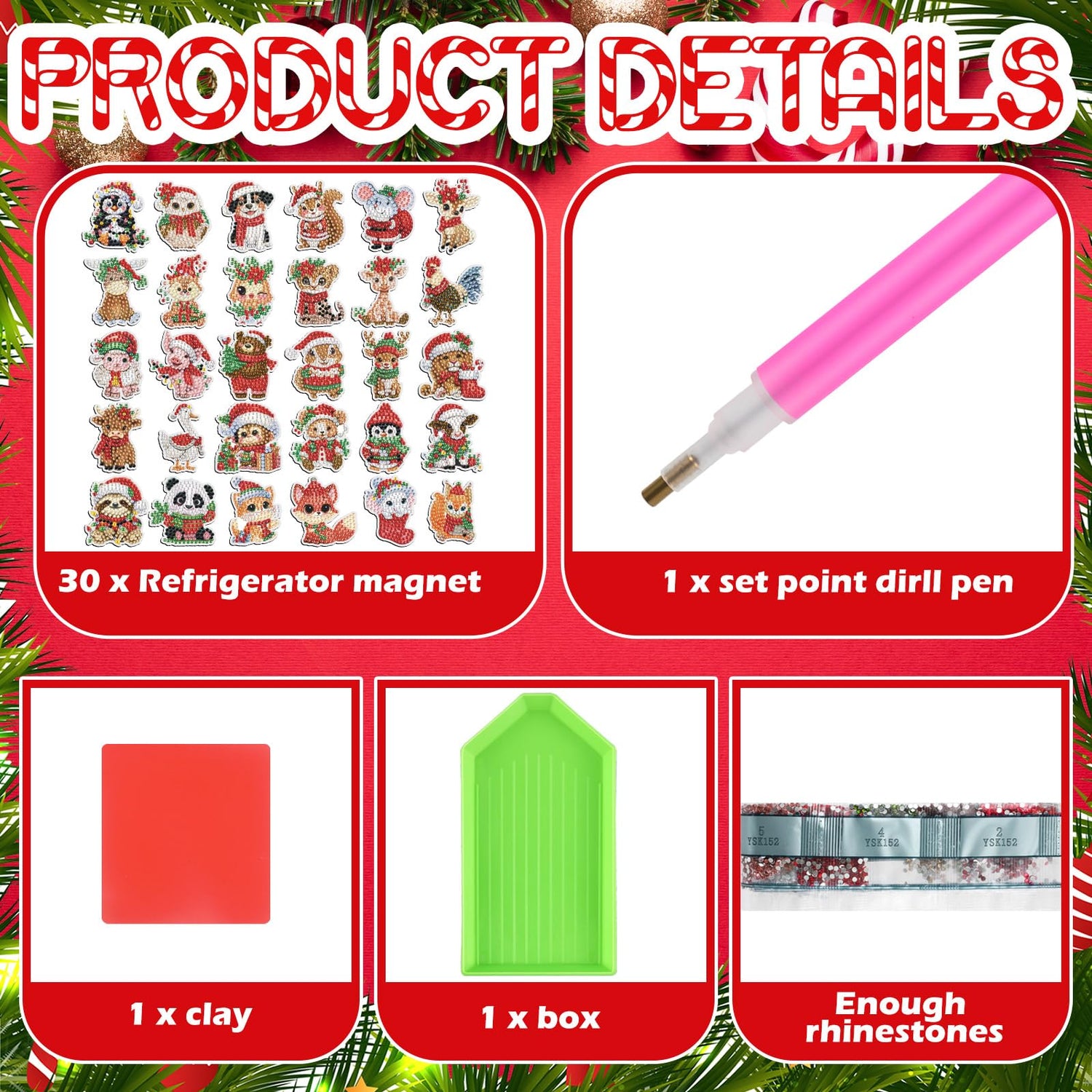 - Christmas Animal Pattern Design: the Christmas animals diamond art magnets are designed with cute animal theme and with classic Christmas elements, such as santa hats, poinsettias, Christmas trees and more, compared with ordinary refrigerator magnet, diamond painting magnets have a shiny looking and practical features, adding fun to your home decor