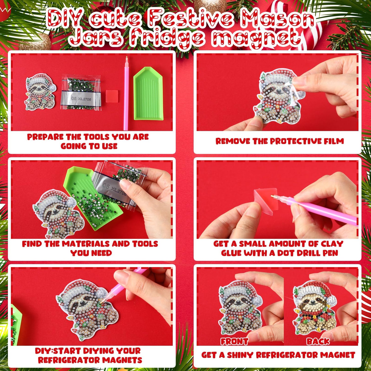 - Quality Material: these Xmas diamond painting are made of quality magnet materials and rhinestone, sturdy and long lasting, not easy to fade, with nice stickiness, it is combination of fridge magnet and diamond art kit, fun and creative DIY projects, you can use imagination and creativity to create distinctive designs while enjoying endless fun