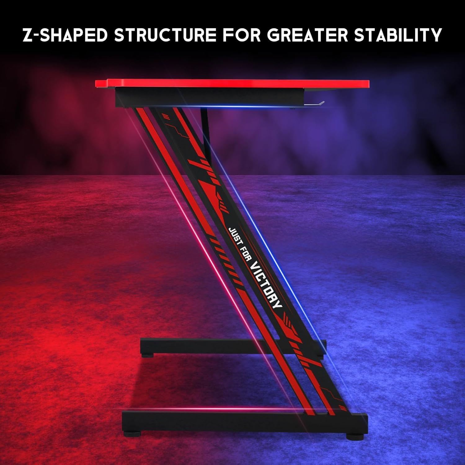 - Spacious Computer Desktop:The black gaming computer desk with headphone hook, The dimensions of this Z shaped gaming computer desktop are 39.4 "W x 23.6 "D, enough for your monitor, mouse and keyboard and other gaming devices, and more. For game lovers bring a better experience for each gamer.
