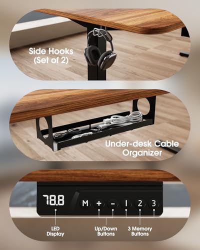 - 【Cable Management Tray & Dual Hooks for a Clean Workspace】The included cable management tray, cable clips, and two side hooks help reduce clutter and keep your workspace organized. Perfect for managing chargers, adapters, headphones, and accessories while keeping your desktop clean and professional. A strong choice for users searching “standing desk with cable tray,” “desk frame with hooks,” “cable management standing desk base,” and “organized home office desk frame.” Smooth assembly and long-lasting components make this frame a reliable solution for any modern workstation.