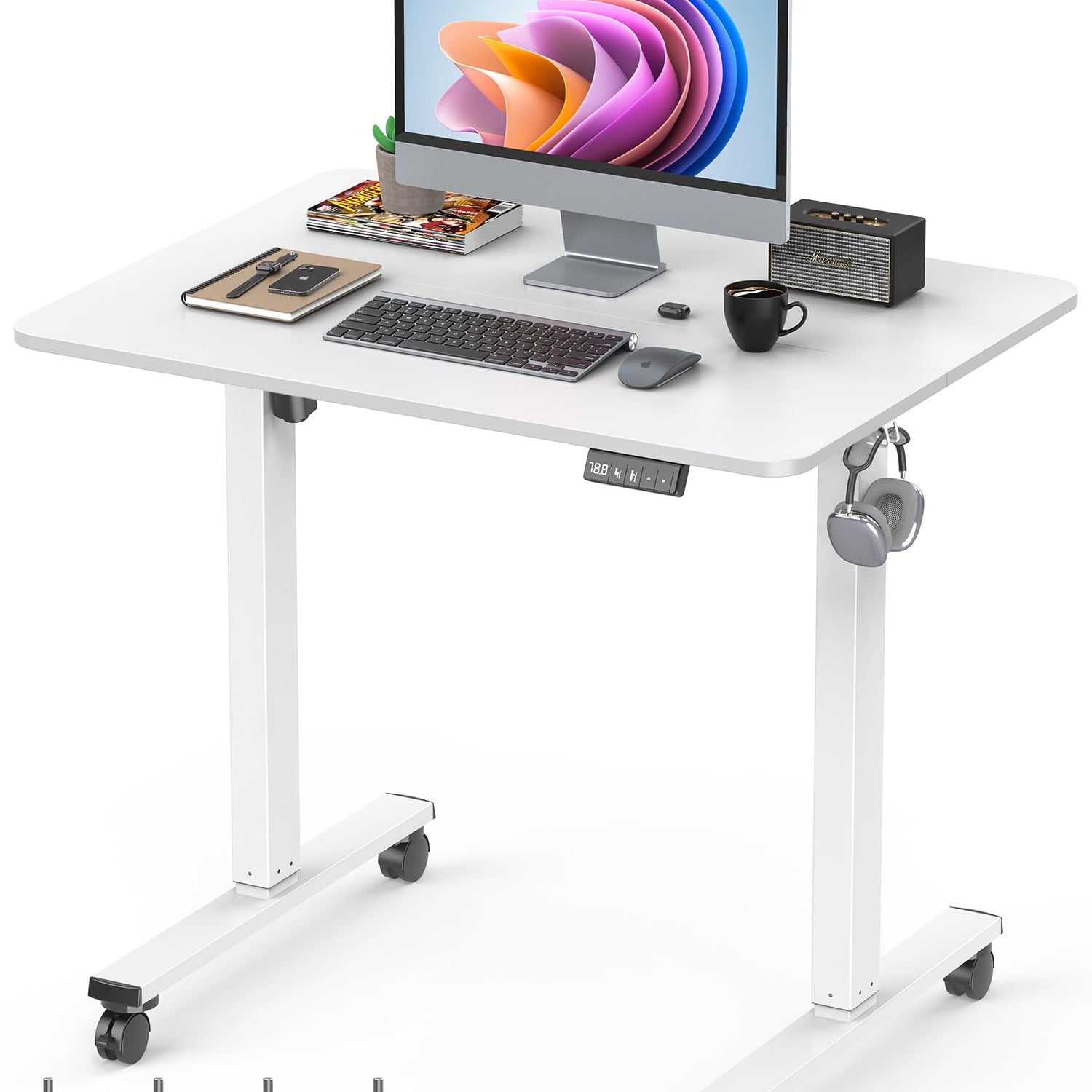 Xyndyx Small Height Adjustable Electric Standing Desk, 31.5" x 23.6" Sit Stand up Desk with Splice Board, Ergonomic Rising Computer Home Office Desk Table with Memory Preset, White Frame/White Top