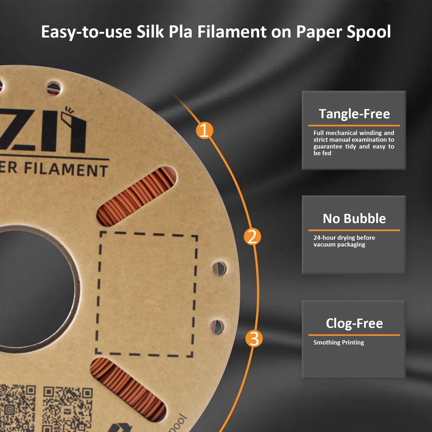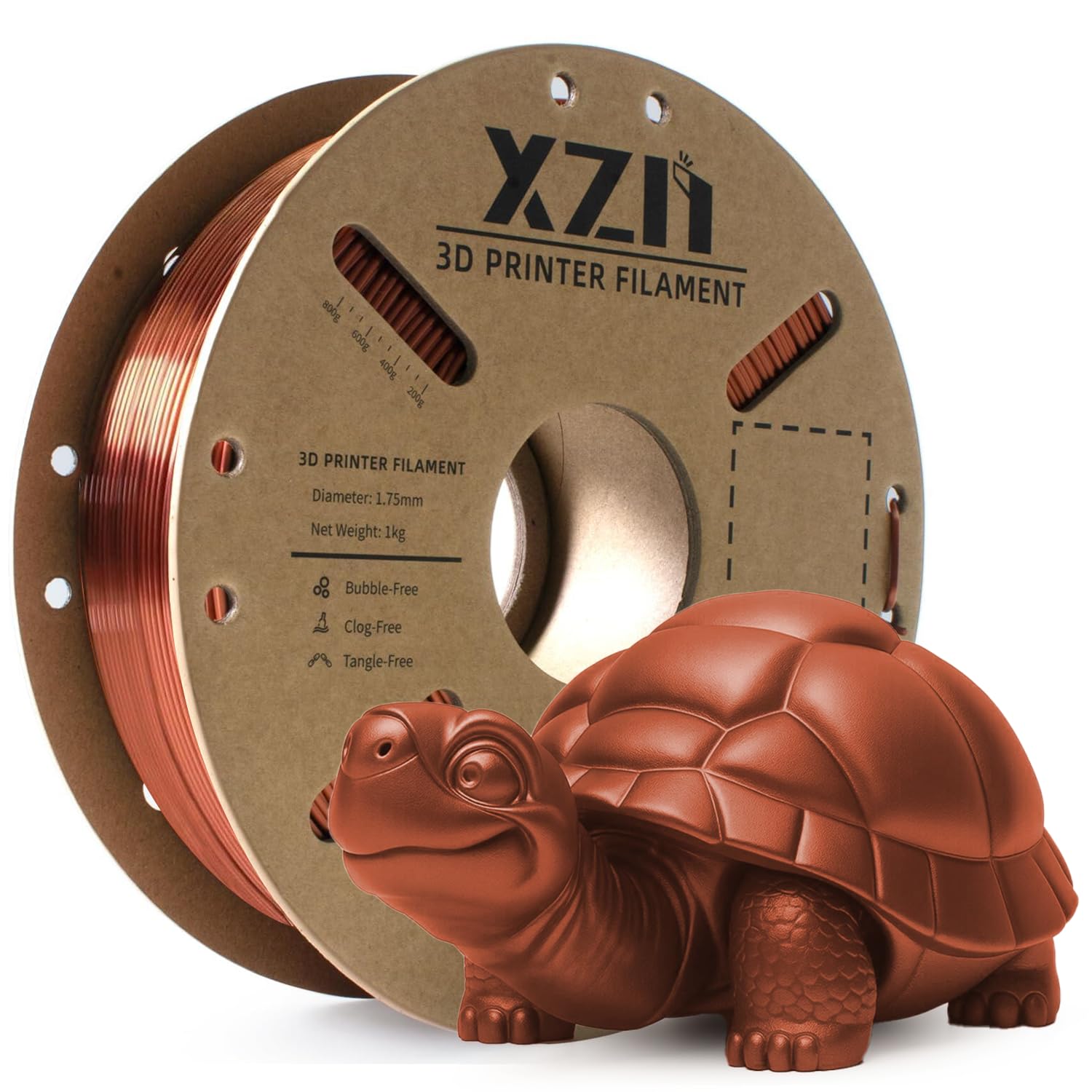 XZN Silk PLA Filament 1.75mm, Clog-Free, Metal-Like Shiny 3D Printer Filament 1kg Spool (2.2lbs), Neatly Wound, +/- 0.02mm Precision, Vacuum Packaging, Fit Most FDM Printer, Metallic Copper