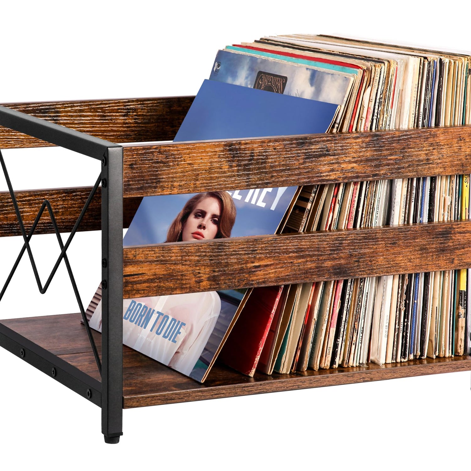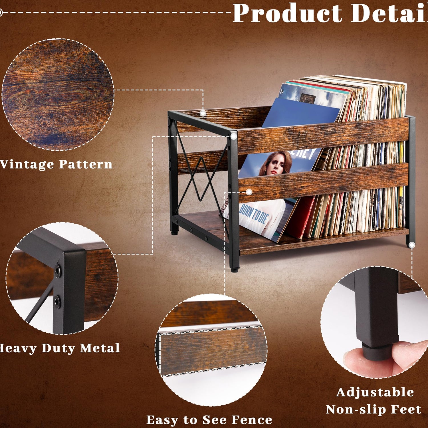- Sturdy & Durable: Made from high-quality metal and MDF wood, this storage crate ensures strong stability and durability. This combination of materials provides a robust framework that can withstand the test of time and the weight of your vinyl collection.