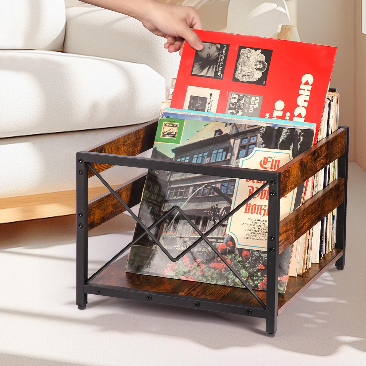 - Visible Design: The open, hollowed-out structure with a geometric metal shape makes your records and magazines easily visible and accessible. It also includes four adjustable foot pads to ensure stability and protect your furniture from scratches.