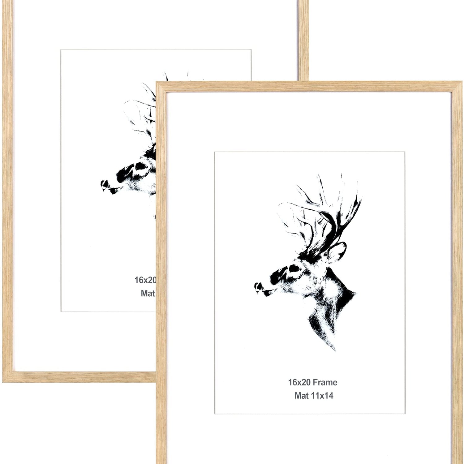 - Design: Oak 16x20 inches wood frame with simple flat molding, display picture 11 x 14 with mat or 16 x 20 without mat, perfect for your cherished memories and favorite posters, landscape, art prints or portrait. Comes with hanging hardware and pre-attached sawtooth hangers for vertical or horizontal wall hanging more easy.