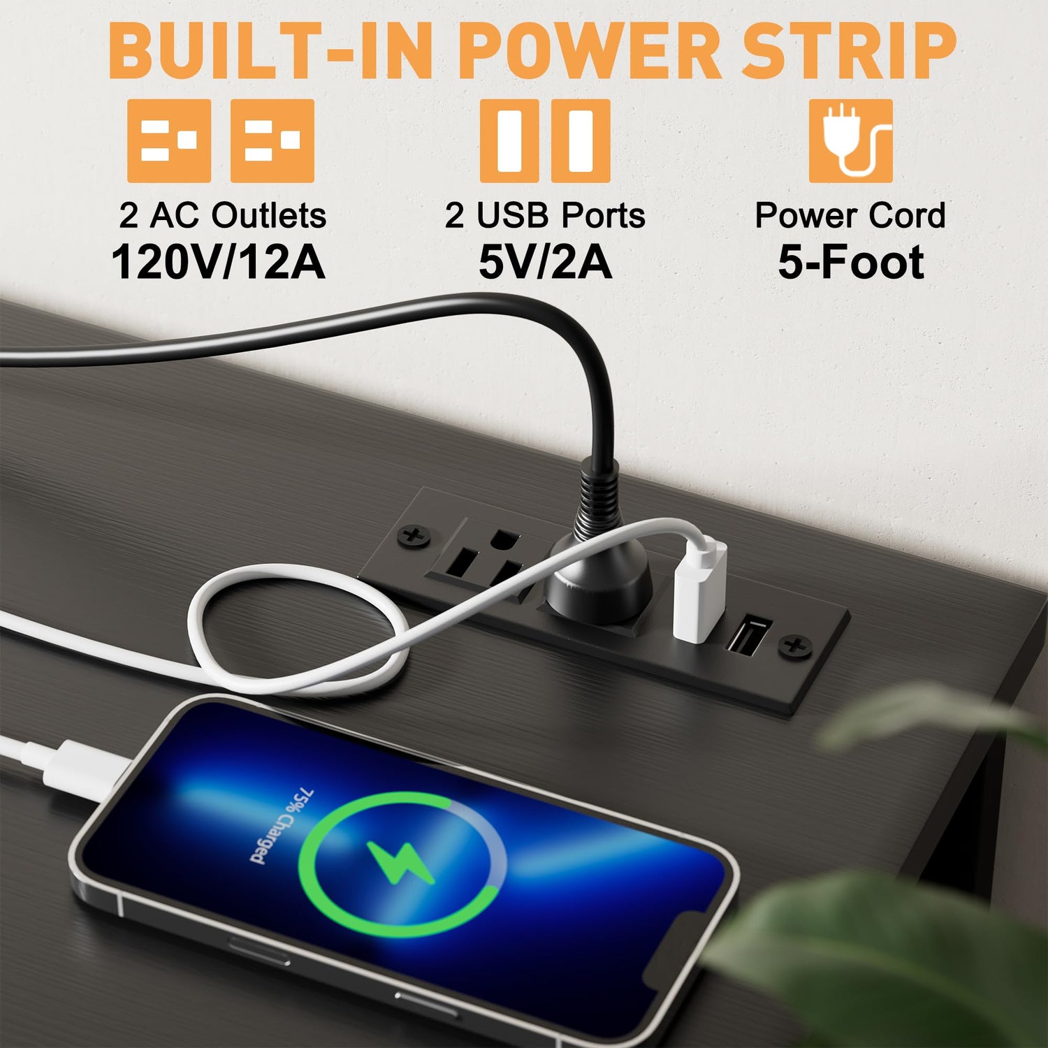 Details: TV Stand 50 Inch TV: Extra Long TV Console Table has built-in 2 power outlets, 2 USB ports and a 5ft power cord. Providing convenience for charging 4 devices simultaneously. For TV, Wi-Fi router, gaming device, lamps, fan Waiting for charging to provide convenience.