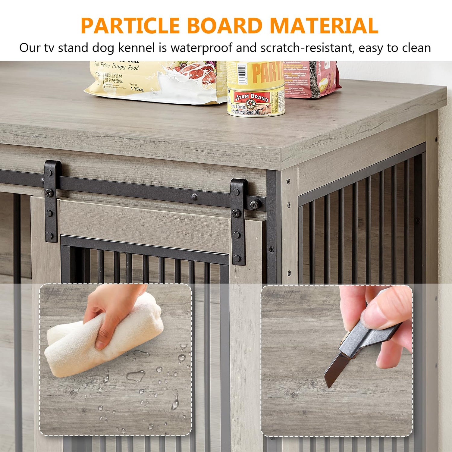 Details: Yafylly 60.6 Inch Grey Dog Crate Cabinet Furniture is multifunctional, not only can it be used as a dog crate for your dog, its large table top provides ample space for you to store your other items.