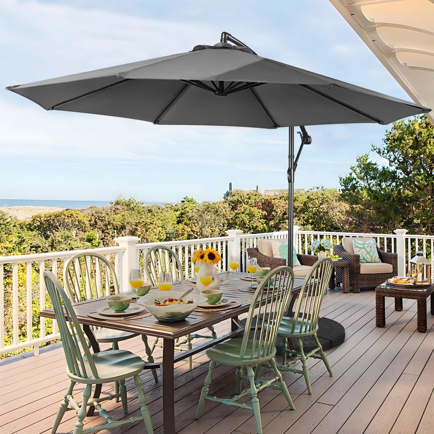Yaheetech 10FT Patio Offset Umbrella - Cantilever Hanging Outdoor Umbrellas w/UV Protection & 8 Ribs & Handy Crank & Cross Base for Market/Garden/Lawn/Deck/Backyard/Pool - Gray