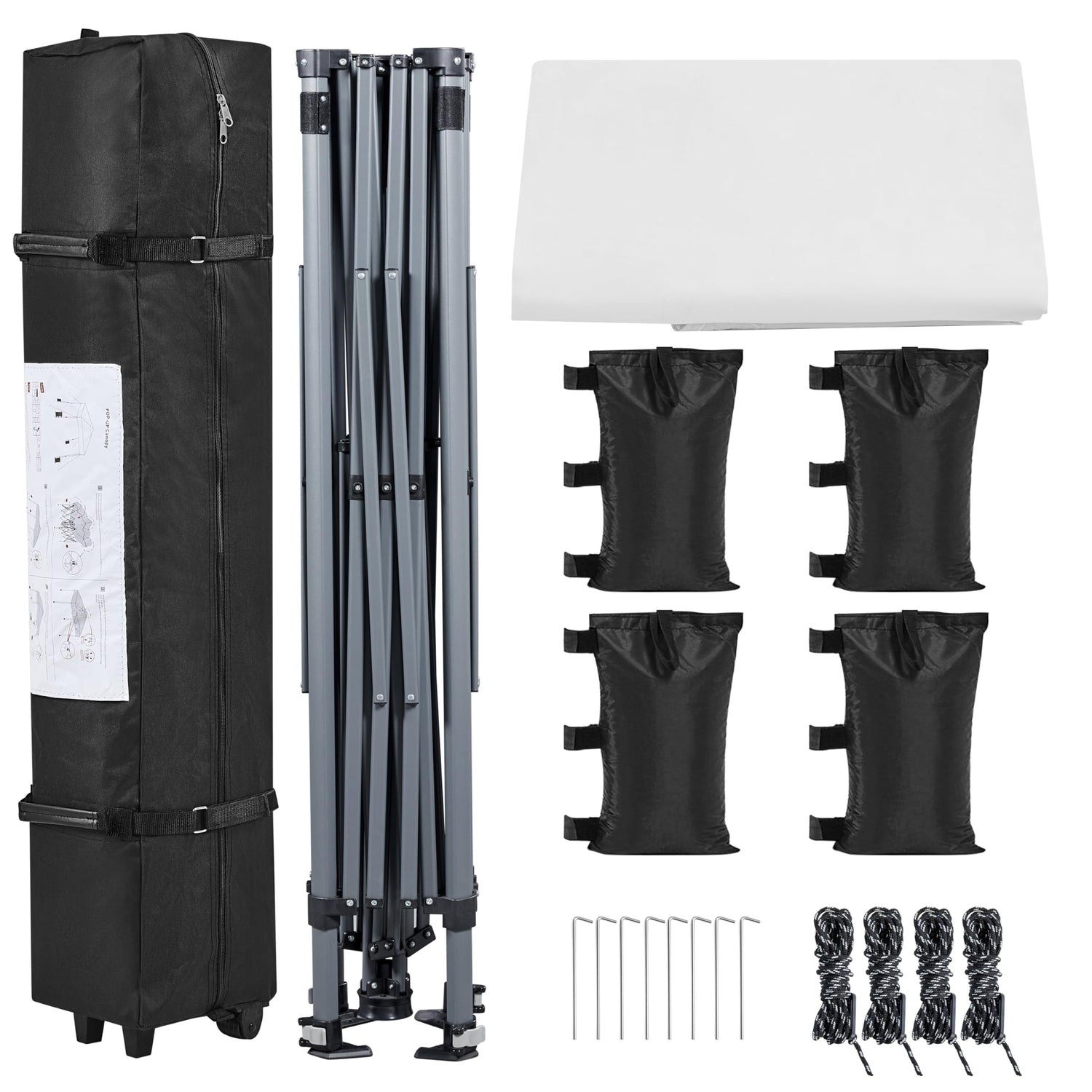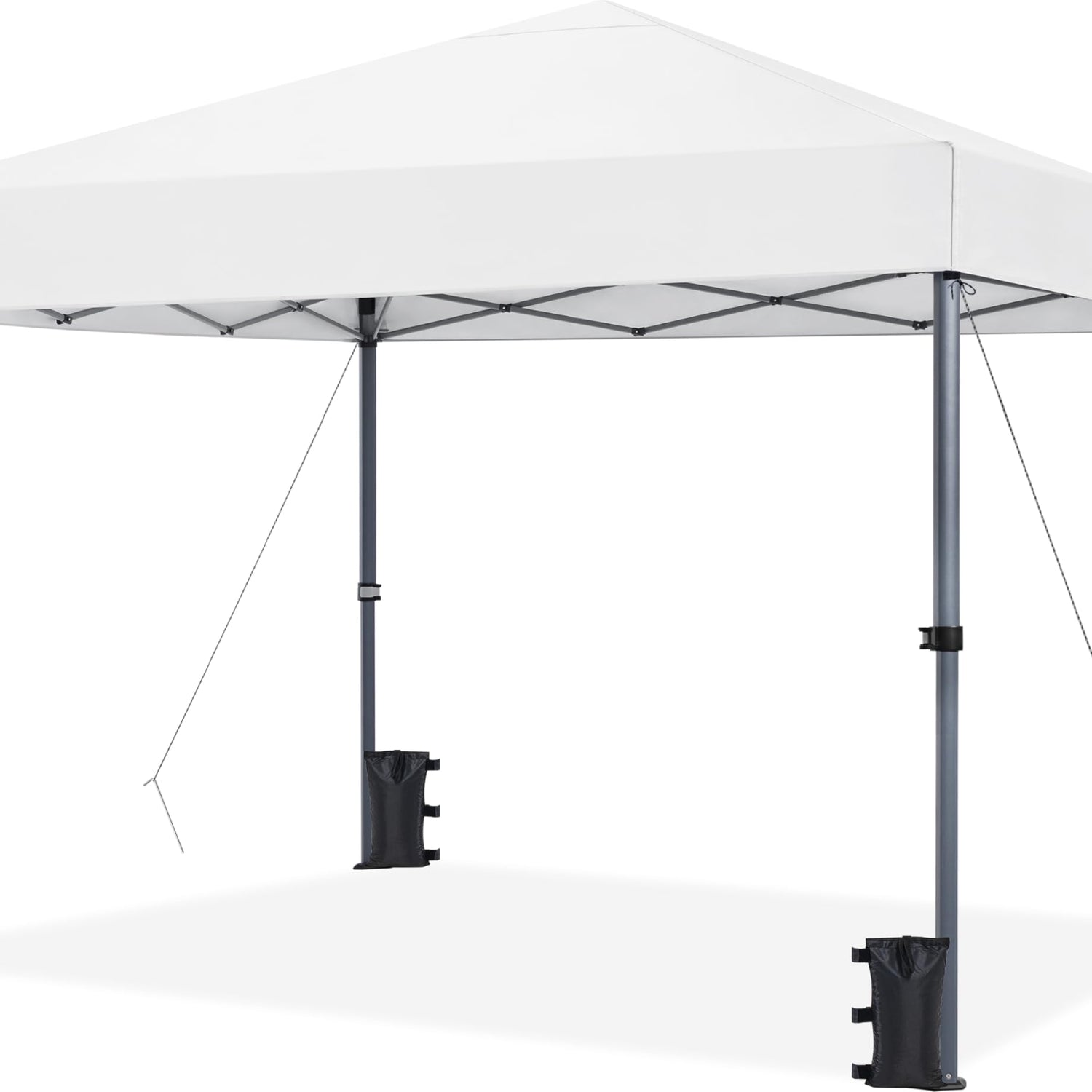 Yaheetech 10x10 1-Person Setup Pop Up Canopy Tent, Instant Portable Commercial Canopy Tent, Outdoor Gazebo with 1-Button Push, Wheeled Bag & 4 Sandbags for Home, Party & Outdoor Activities, White