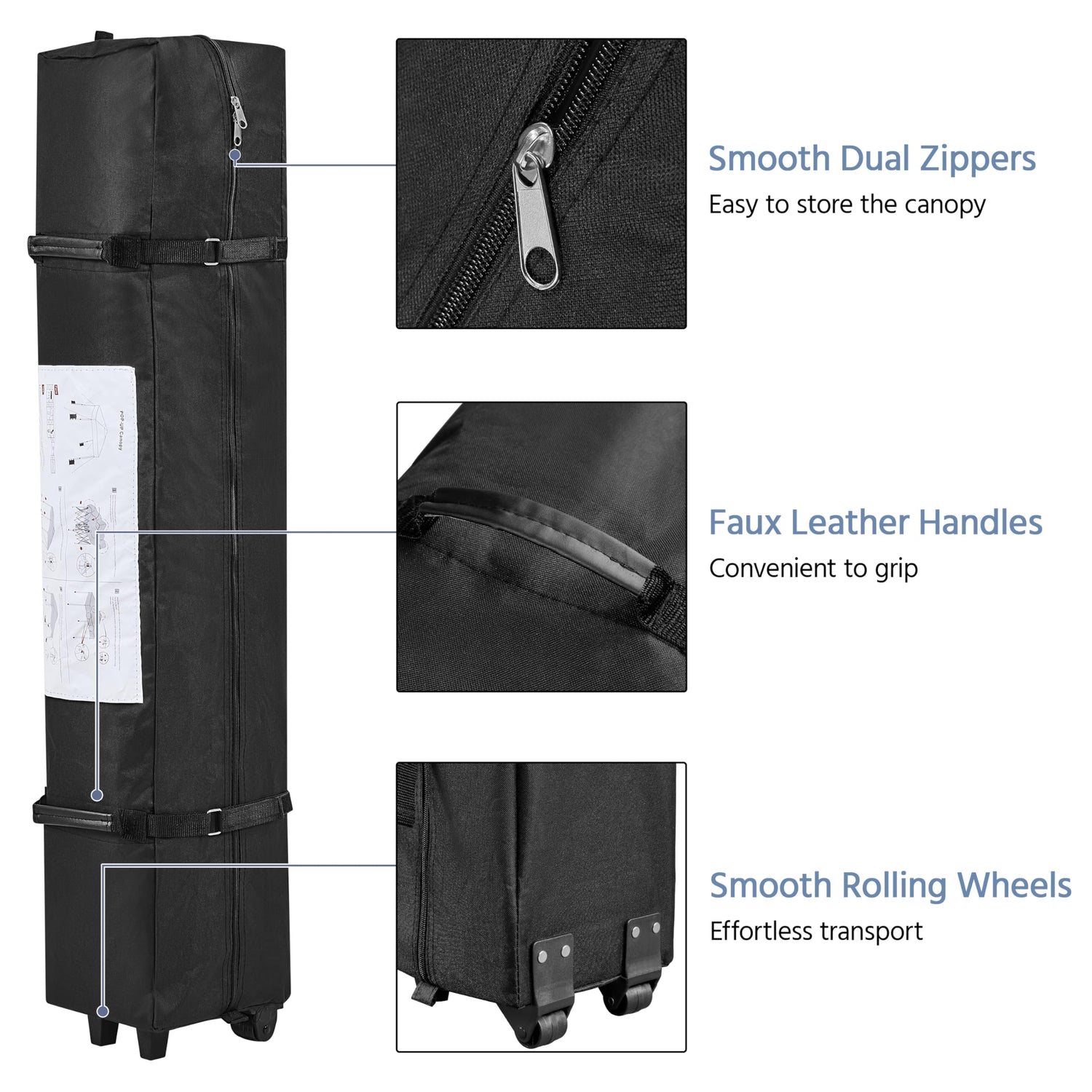 - Convenient Roller Bag: Transporting and storing the canopy is made easy with the included wheeled storage bag. Equipped with two rubber handles and snap buckle straps, this bag provides convenience and protection for your canopy