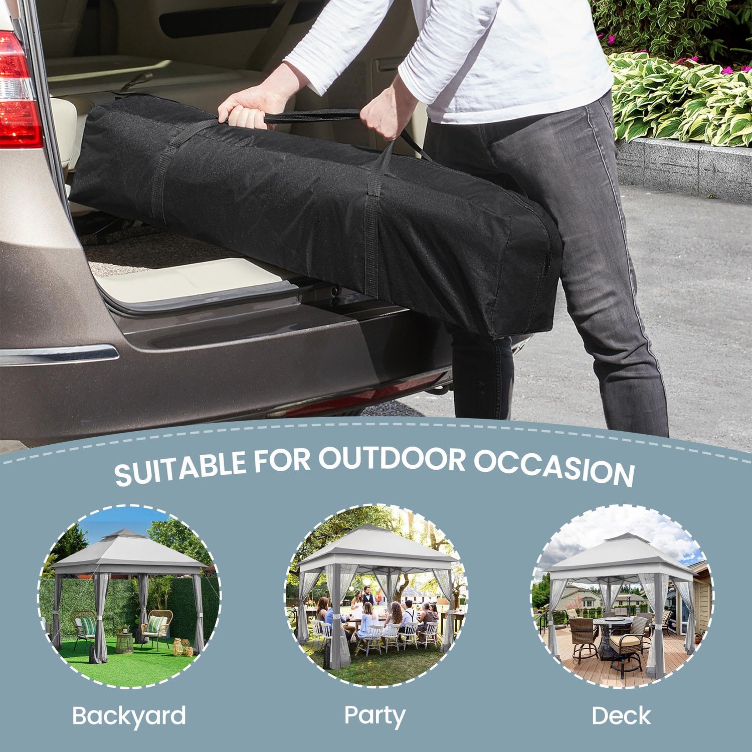 Yaheetech 11x11 Pop Up Gazebo Outdoor Canopy Shelter, Instant Patio Gazebo Sun Shade Canopy Tent with 4 Sandbags, 2 Tiers Roof & Mesh Netting for Lawn, Garden, Backyard & Deck, Gray