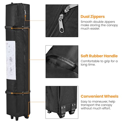 - Convenient Roller Bag: Transporting and storing the canopy is made easy with the included wheeled storage bag. Equipped with two rubber handles and snap buckle straps, this bag provides convenience and protection for your canopy