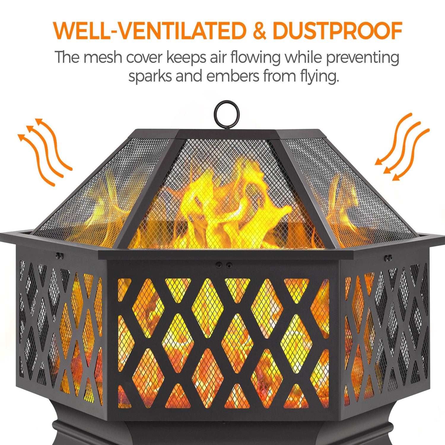 - 【Mesh Wall Design For Better Airflow】The cut-out sides of this wood-burning fire table double the style and the function. You can check the condition of fire from a distance, and the improved airflow provides mesmerizing flame and cozy warmth in chilly nights.