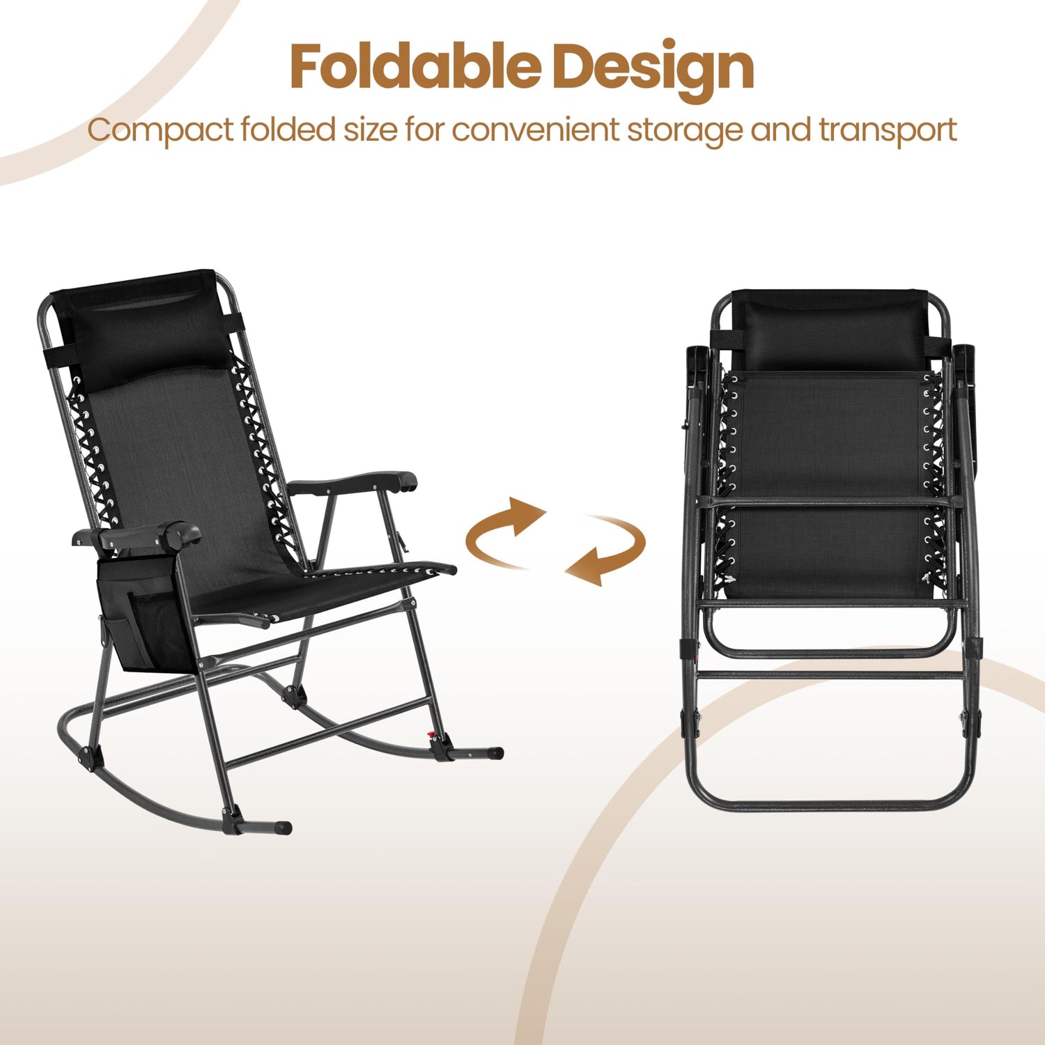 Yaheetech 26in Rocking Chair Outdoor Zero Gravity Folding Chairs Rocking Chairs Foldable Outdoor Reclining Lounge Chair for Outside Lawn with Cupholder/Pillow Ergonomic Design for Rest, Black