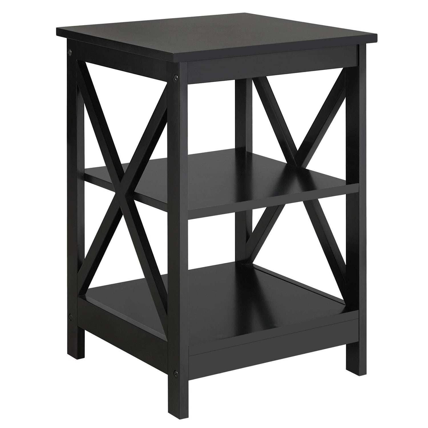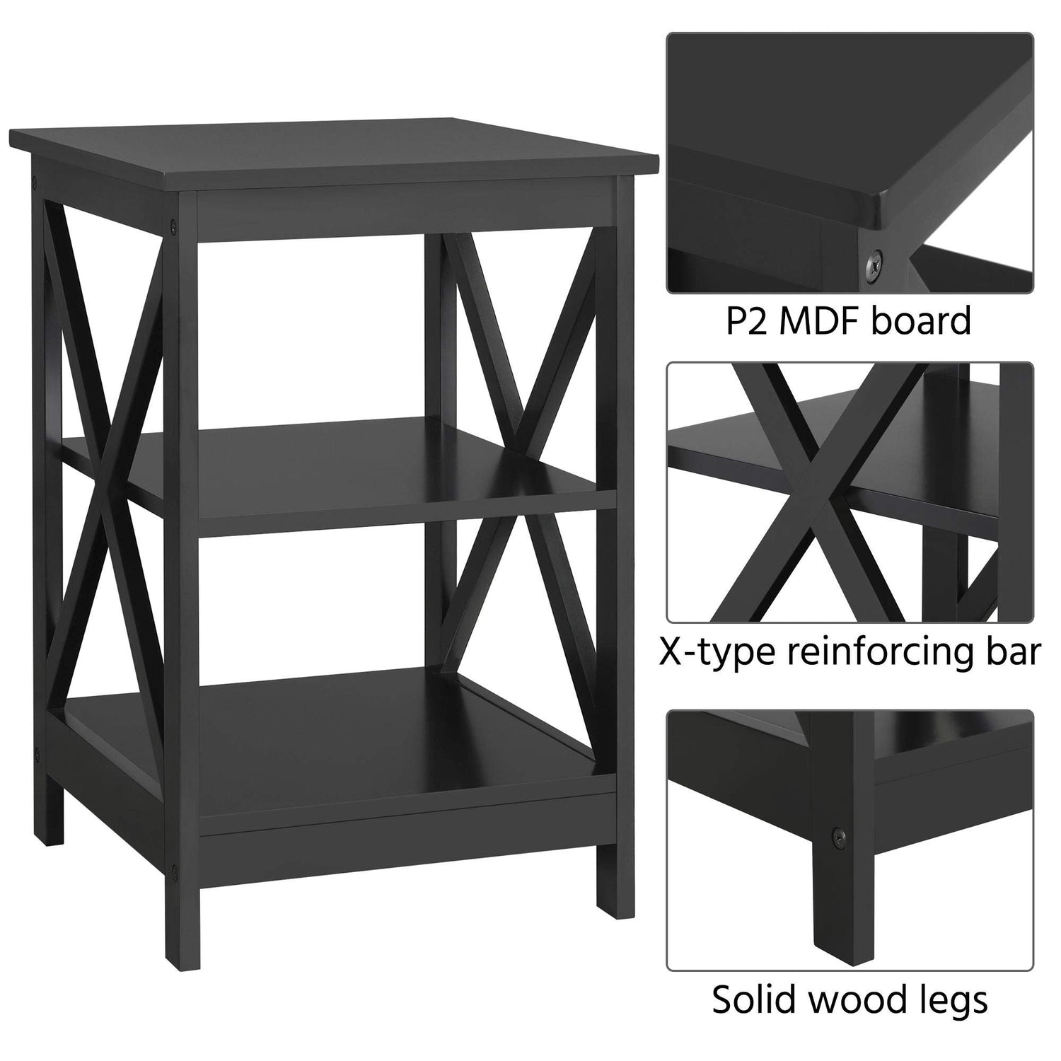 Yaheetech 3 Tier End Tables with Shelves, Wooden X-Design Sofa Chair Side Table Storage Stand, Accent Home Furniture, Set of 2