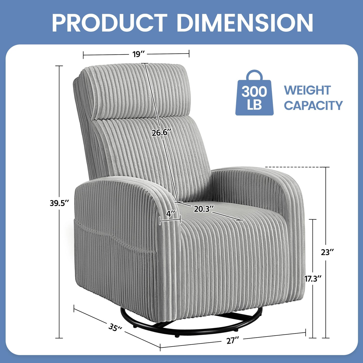 Yaheetech 360° Swivel Glider Chair for Nursery, Rocking Chair Nursing Chair with Side Pockets, Corduroy Glider for Living Room with High Back Light Gray