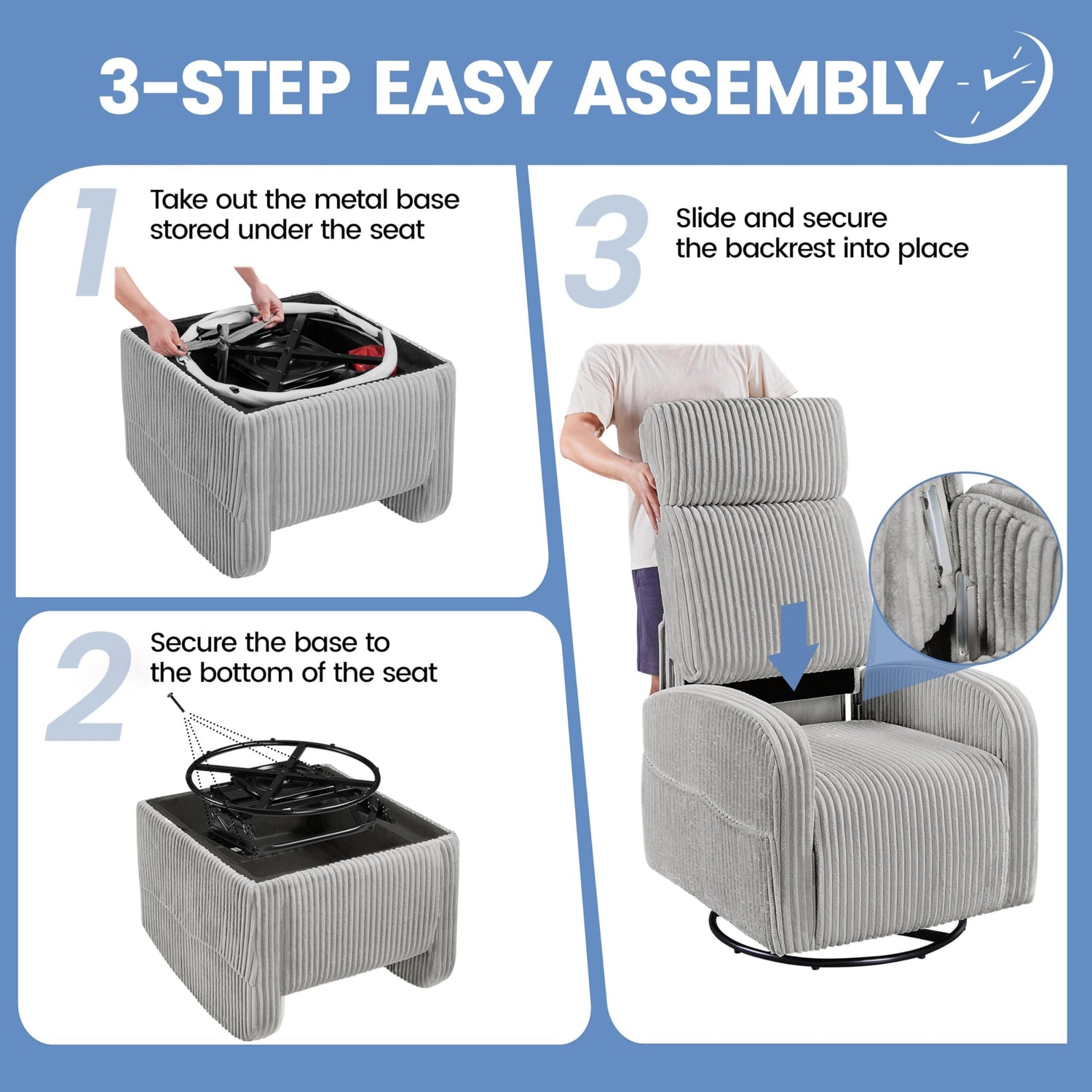 - Easy Two-Step Assembly: Setting up your nursery glider is a breeze—simply attach the base and backrest, and you’re all set to sink into comfort and style in no time